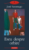 De Jose Saramago am aflat de pe bloguri. Ridicat in slavi si laudat de toata lumea am amanat lectura Eseului pentru ca nu voiam sa fac parte din trend. Citind cartea insa am realizat (pentru a nu stiu cata oara) ca la capitolul literatura ar trebui sa plec urechea cand vine vorba de o carte adulata de mase de cititori. Acum ma numar si eu printre cei care s-ar urca in balconul Operei din Timisoara pentru a striga in gura mare cat de buna e cartea.