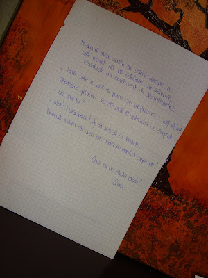 mei cel mai mult mi`a placut mesajul lui Dan in care ii scria lui M. (printre altele, scuzati`mi scrisu` de acum 12 ani 😳 imi pare rau ca nu v`am aratat si eu diferentele din prezent. lasa..maybe nexy time ) sper sa n`ajung niciodata sa primesc o scrisoare de genul. stiu eu de ce spun asta. inteleg multe chiar si printre randurile tale, un necunoscut pt mine.