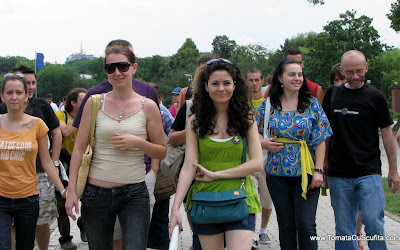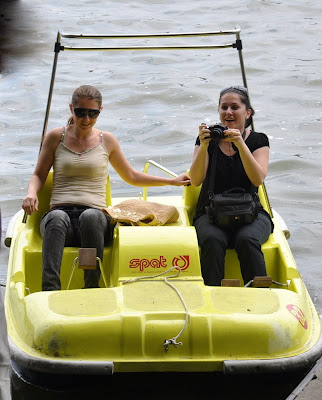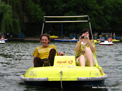 Şi ne-am trezit în a treia zi (nu după Scripturi) cu 15 minute înainte să sune ceasul. Ne-am savurat micul dejun, că doar aveam timp până la 11, când urma să ne înfiinţăm în parcul Heleşteu, pardon Herăstrău. După mine, unul dintre cele mai frumoase parcuri pe care le-am văzut şi chiar daca te poţi sufoca de claustrofobie printre atâţia oameni, io m-aş declara mulţumită dacă l-aş avea la îndemână de fiecare dată când aş avea chef de o plimbare cu bicicleta, cu rolele, de o plimbare cu barca, cu hidrobicicleta sau cu vaporaşul, de o plimbare pe jos, de stat la o terasă, de citit o carte pe bancă, de făcut poze şi de admirat animale (cai, câini) şi păsări (lebede, raţe, păuni). Mda, Herăstrăul i-ar sta bine firii mele. Păcat că e la 600 şi ceva de kilometri distanţă. Sniff, sniff.