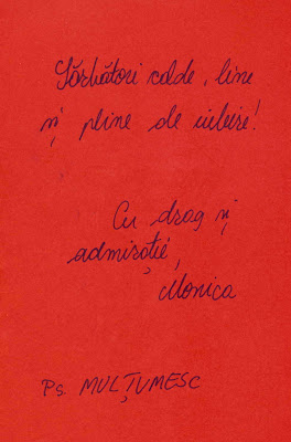Multumesc Tomata, multumesc ca esti acolo, undeva, in Timisoara, (si in virtual, of course!) si ca sint printre cei carora le impartasesti gindurile si trairile, ezitarile si faptele….
