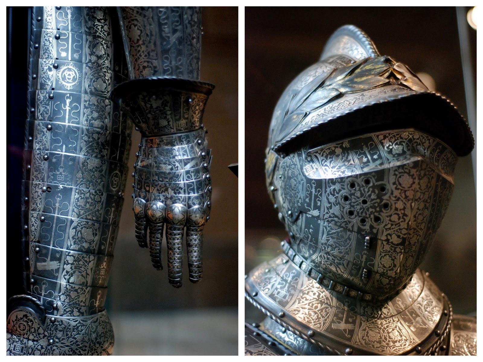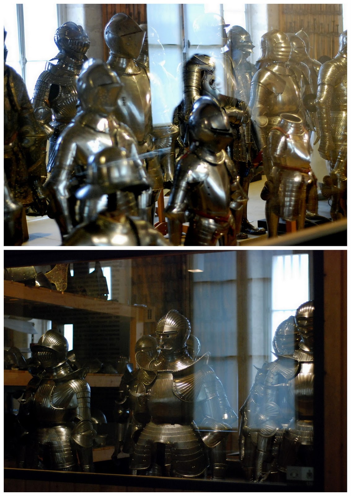 Ce ai pus in primele poze, acele armuri ca din bronz, foarte lucrate, sunt armurile regelui Ludovic al XIII-lea pe care il stim din Cei trei muschetari. Intr-o vitrina erau mai multe armuri de ale lui, de cand era copil, adolescent si adult.