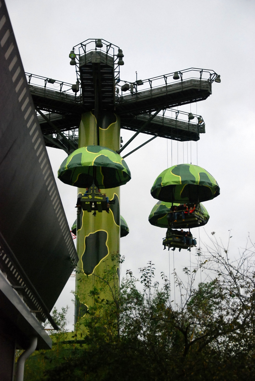 După turul cu trenulețul, ne-am îndreptat către Tower of Terror, despre care Alina ne spusese că e cu adevărat o experiență înfricoșătoare. Pe hartă, obiectivele parcului erau notate cu Big Thrills, Family Adventure și Fun with the Kids. Cum e și normal, timpul fiind scurt, ne-am orientat în primul rând către Big Thrills și Family Adventures, decât către Fun with the Kids, care erau mai mult locuri de joacă. Tower of Terror era primul big thrill și ne așteptam la ce era mai rău. Chiar așa a și fost. Ne-am urcat într-un lift, cam 12 persoane (cred) și ne-a urcat și ne-a coborât, pardon scăpat, cu liftul ăla, de-am crezut că facem pe noi. :)) n-am poze, mergeți să vedeți. 😛 Așa arată pe dinafară si putin pe dinautru: