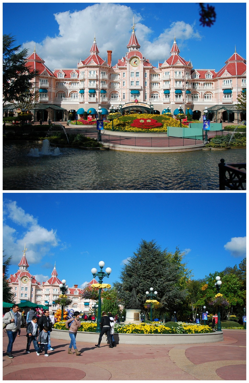 Cum în Walt Disney Studios n-am văzut emblema parcului, ne-am zis că sigur trebuie să fie în al doilea parc. Castelul roz e absolut superb: