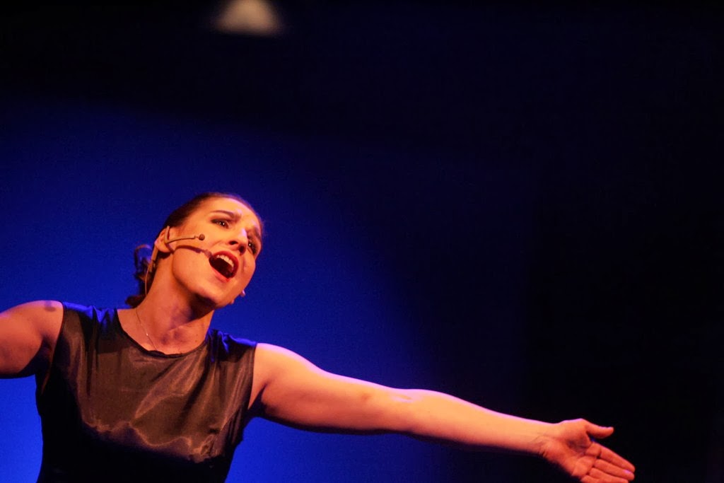 Nu, eu nu regret nimic e povestea unei actrițe care primește rolul Edith Piaf într-un spectacol și care e surprinsă în timp ce repetă și se pregătește pentru reprezentație. Actrița e interpretată de Sabina Bijan, o surpriză foarte plăcută, atât din punct de vedere muzical, cât și teatral. Pe Edith Piaf nu e ușor s-o imiți, vocea ei unică, puternică și suavă în același timp nu poate fi lesne copiată. Sabina Bijan cred că nici nu încearcă să o facă, dar melodiile pe care le cântă sunt de-a dreptul frumoase, reușite, ireproșabile. O franceză clară, rârâită cum trebuie, nazalizată, aproape nativă. Mă așteptam să se cânte pe scenă, deși nu știam nimic despre spectacol. E într-adevăr un mini concert de cover-uri, cu inserții monologice în care actrița povestește sub forma unui dialog imaginar cu Edith Piaf despre viața acesteia din urmă. Alteori îi povestește publicului, dar cel mai bine o redă în melodii. Pentru că așa cum scrie site-ul teatrului, „despre Edith Piaf nu se poate vorbi. Despre Edith Piaf se poate cânta.” Și Sabina Bijan se achită de datorie onorabil.