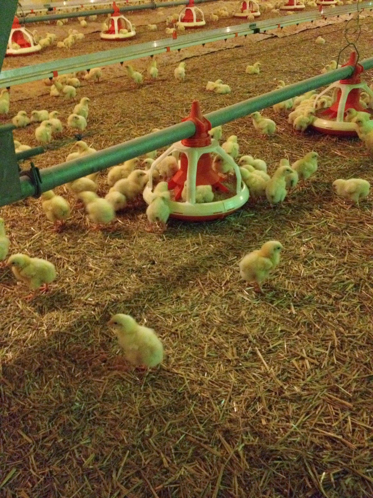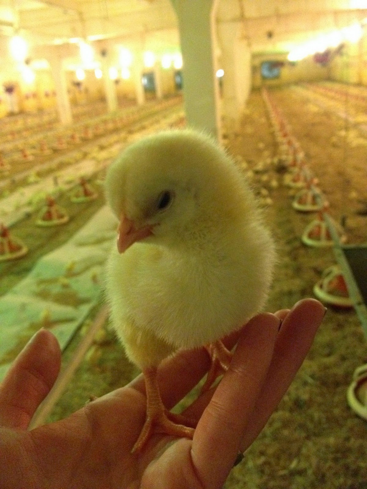Un alt drum ne-a dus la o altă fermă, acolo unde erau puii de-o zi, de trei zile și de 21 de zile. Inutil de spus că a fost cel mai drăgălaș moment. Ne-am pozat cu puii, i-am pozat și pe ei, unul chiar s-a răhățit pe mâna mea. Cine știe ce noroc dă peste mine. În pozele astea se vede cât loc au să se dezvolte.