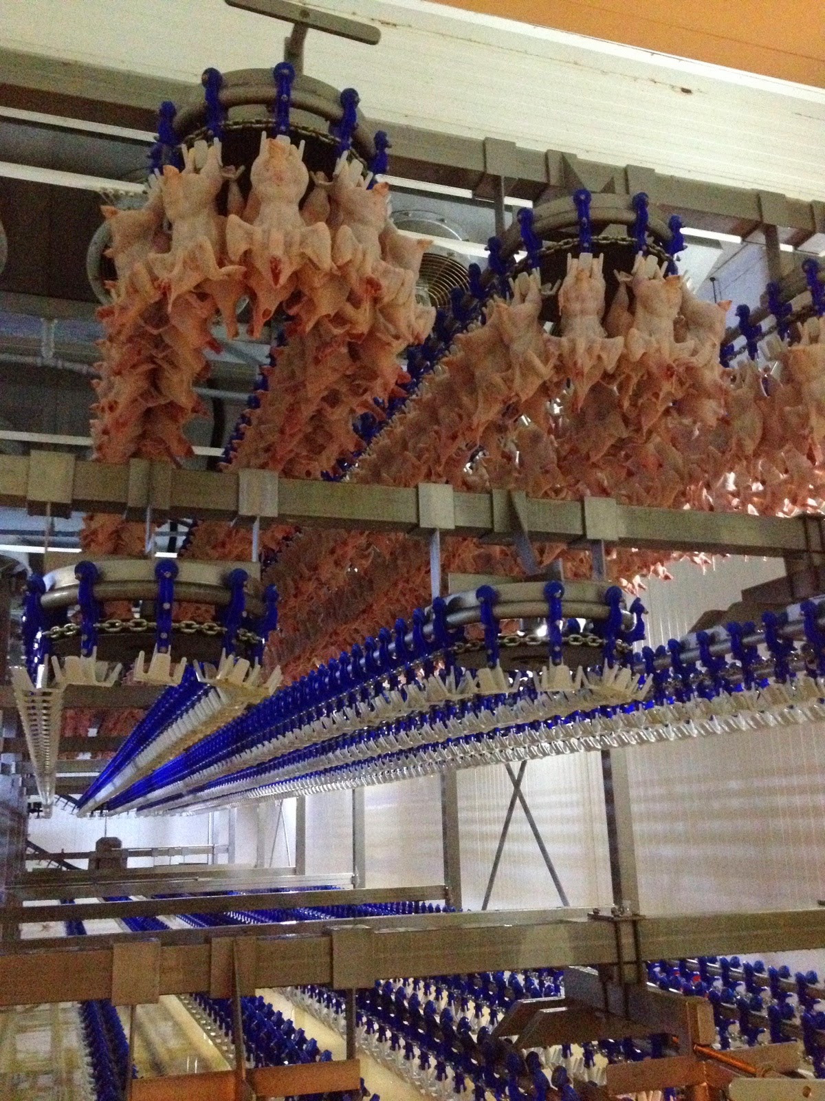 Cel mai interesant mi s-a părut exact ce încercasem să evit: abatorul. Am ajuns, așa cum mi s-a spus, după momentul decapitării puilor, când camera era spălată. Am intrat să vedem cum arată și ni s-au explicat cum stau puii cu capul în jos.