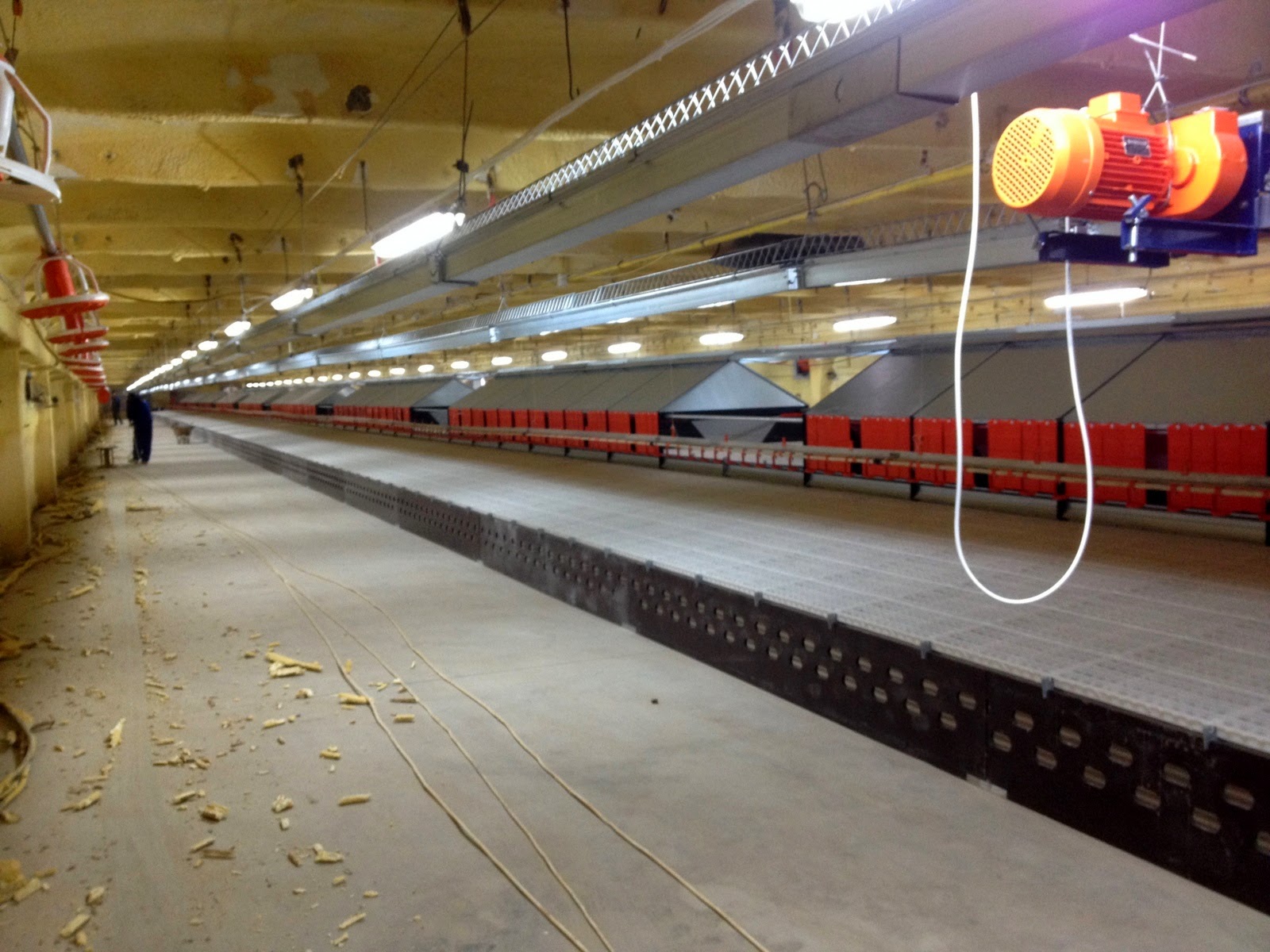 Am intrat și într-o hală în curs de amenajare, identică cu cea a găinilor și cocoșilor.