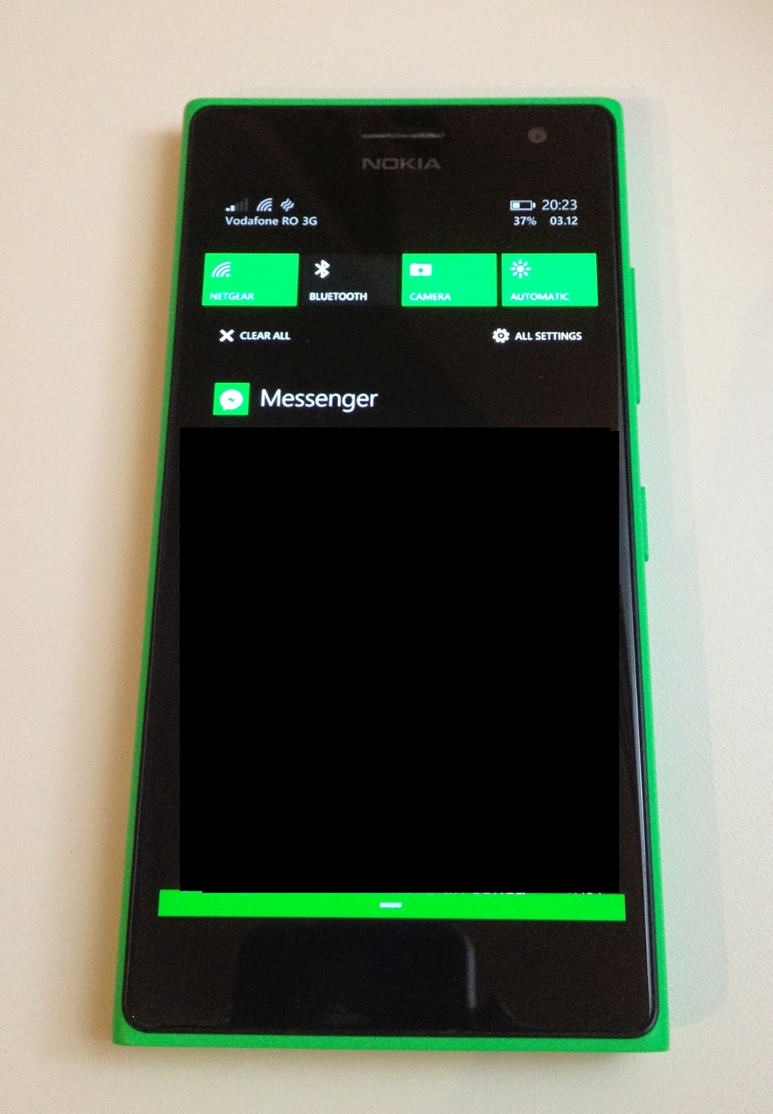 Daca slide-ui de sus în jos, vei avea acces la alte comenzi: conectarea la rețeaua de WiFi, conectarea la Bluetooth, acces rapid la camera, dar și o chestie mișto de tot: setarea luminozității. Dacă până aici nu e nimic deosebit, senzaționalul e odată ce-ai ales funcția Automatic. Telefonul își va regla singur luminozitatea în funcție de lumina din cameră. Expus la o lumină mai puternic, își va intensifica lumina, iar la întuneric se va ajusta, să nu-ți rănești ochii când te uiți în toiul nopții la mesajele de pe Facebook.