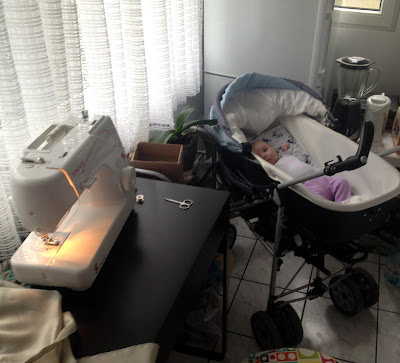 Dacă vă întrebați de unde am timp să și cos, având în vedere că am un bebe de aproape două luni, vă las cu poza asta 🙂