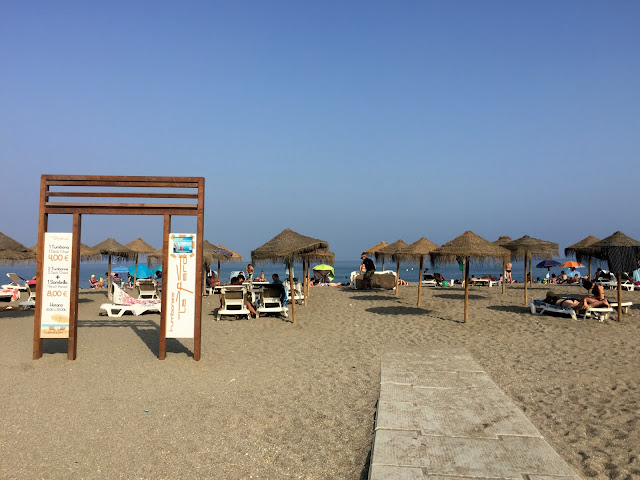 Din păcate nu scria sub poza de mai sus că peisajul e din Nerja și nu din Malaga, că mă orientam altfel. Tehnic, Nerja e în regiunea Malaga, așa că nu e complet incorect, dar după ce am cumprat biletele de avion, după ce am rezervat camera și m-am documentat un pic mai bine, am aflat că plajele mai spectaculoase pe care le căutăm eu erau în Nerja. Plajele din orașul Malaga sunt plictisitoare, lungi, cu nisip cu grăunte mediu și negricios și apa rece. Zero spectacol natural. Chiar și ca arhitectură și vibe, Nerja mi-a plăcut mai mult, așadar dacă va inspiră pozele și experiența noastră, nu alegeți cazare în orașul Malaga, ci în Nerja. E drept că avioanele aterizează acolo, dar până la Nerja sunt autobuze la fiecare oră și costă doar 4,5€ din centrul Malagăi.