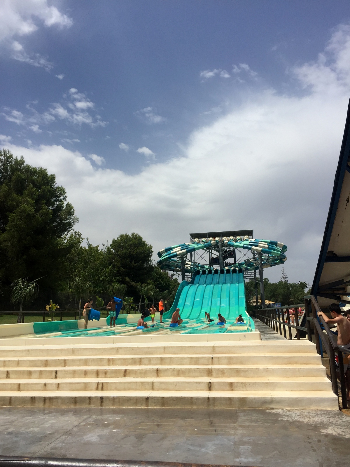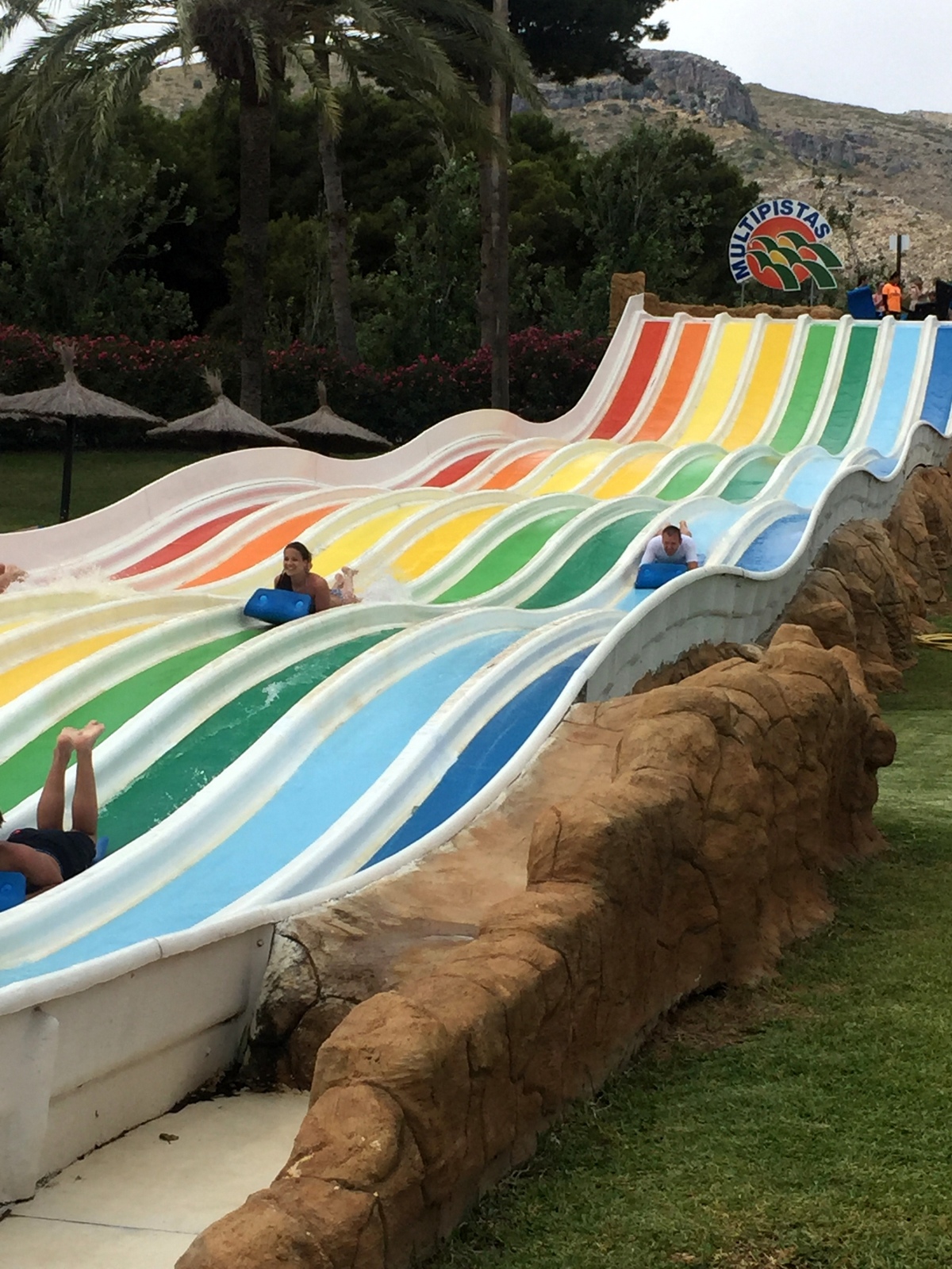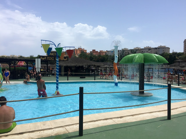 O sa includ tot în postul ăsta și câteva cuvinte despre parcul de distracții, că nu are rost să fac un articol separat. Dacă apa rece a mării a speriat-o pe Ada și după prima zi a refuzat categoric să mai intre, la Aqualand a fost altă poveste. Cred că i s-a părut și acolo un pic mai rece, dar toate toboganele alea au amețit-o de cap și au făcut-o să uite. S-a dat pe toate, nu mai voia să plece, să iasă din apă. Ne bucuram de bucuria ei, dar ne rugam la unison să se culce, să ne ducem și noi pe toboganele pentru adulți. A adormit într-un final apoteotic și am făcut cu rândul să ne dăm și noi. Nu le-am încercat pe toate și nici n-am avut destul timp să ne dăm de mai multe ori, dar a fost bine și cât a fost. Ne-am făcut damblalele, ne-am potolit setea de adrenalină (mai ales pe Kamikaze) și așteptăm să mai crească să ne dăm toți împreună. Am cumpărat biletele din Malaga, de la un info point din stația de autobuze și au costat 28 de euro de persoană, iar pentru Ada gratuit. Din Malaga până în Torremolinos, unde e parcul am plătit bilet de bus 1,65 de euro de persoană, doar că o amețită care ne întreba la urcare unde coborâm, a uitat să ne anunțe să coborâm. Așa că am mai plătit câte 3 euro de persoană pe busul Aqualand. În fine…