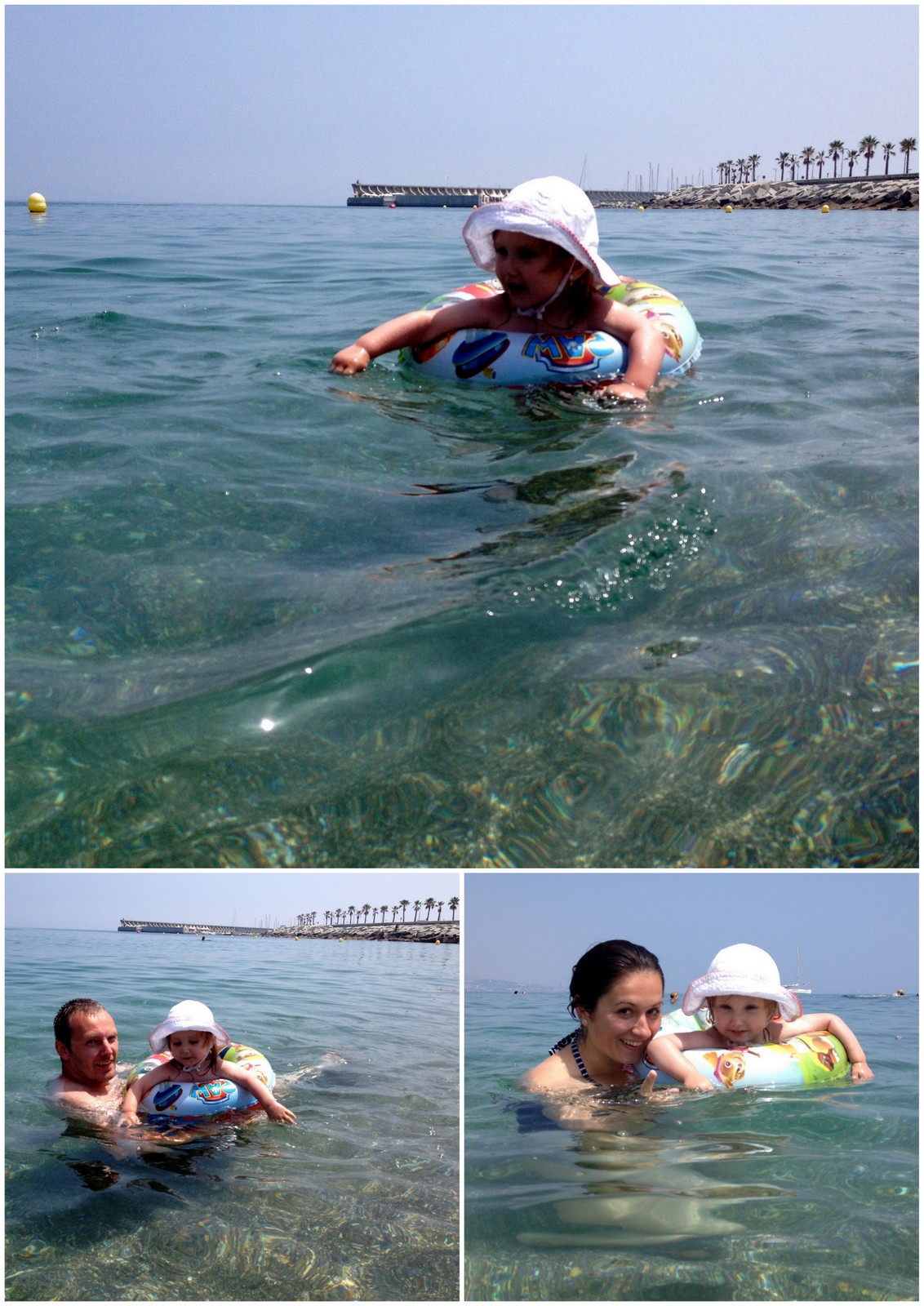 Ada și marea. Am așteptat vacanța asta de când era în burtă. Iar cu fiecare dovadă de iubire pentru apă, mi-am imaginat bălăceala noastră prin valuri, cu colacul, cu aripioare, cu saltele, cu orice. Am fost și la ștrand în Berlin, nu ar fi ieșit din apă nici când părea să înghețe de frig, la bazin era ca peștele, deci părea promițător. Din păcate, am greșit marea. Marea Alboran (da, așa o cheamă) a fost un pic cam preeeeea rece pentru Ada. Plus că nici valurile nu i-au inspirat încredere și n-a fost chip să intre singură. Prima și singura baie a fost în prima zi când a intrat doar la mine în brațe și doar colacul a convins-o să plutească un pic. Suficient să-i facem poze și s-o filmăm. Dupa ziua aia, doar cu țipete a mai intrat un pic și doar să arunce cu pietre în apă. Pentru următoarea vacanță, musai să ne documentăm cu privire la temperatura apei. Am găsit și un site care ne va ajuta în problema asta.