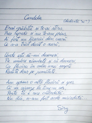 Tartoraş are un caiet în care notează citate şi poezii. Şi eu am un dosar cu foi scrise şi colorate la fel şi încerc acum să le pun pe celalalt blog al meu. Îmi place mult scrisul ei.