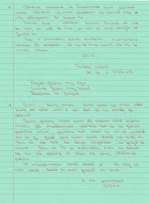 Foarte frumoase toate mesajele insa scrisoarea anonimului catre iubita lui m-a dus la lacrimi,si vorbesc la propriu:) scrisul lui seamana foarte bine cu al fostului meu prieten,pe care l-am iubit 4 ani.Initiala difera.