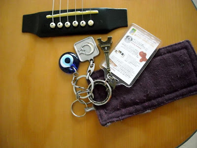 27. Stefy“cel mai drag breloc al meu, e luat la a doua mea escapada bucuresteana, de la Hard Rock cafe…Pe langa acest breloc mai am 8 brelocuri: 2 desfacatoare de bere de la Asirom (unde lucreaza tata), o meduza (de la o prietena), un delfin luat de la mare (sunt obsedata de delfini), un breloc cu music fan (luat de la Piatra Craiului), unul cu numele meu (ce apare putin si in aceasta poza), unul de la National Tweet  Meet si unul castigat pe twitter care e personalizat cu adresa blogului, twitterul si o sintagma in spaniola: “no pares nunca de sonar” (sa nu te opresti niciodata sa visezi). La cheile de acasa folosesc brelocurile de la Asirom si cel cu numele meu, iar restul le folosesc la cheile de la Cluj :)) Delfinul ce apare in aceasta poza nu il mai am, caci s-a rupt :(“