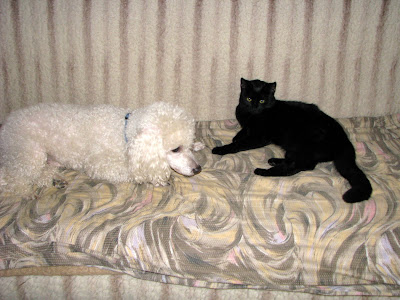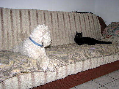 Așa sunt ai mei tot timpul, cățelușul Roro e cel mai bun prieten al motănelului Norișor (rebotezat Stalin, după ce a luat proporții și a devenit un mic tiran) :))