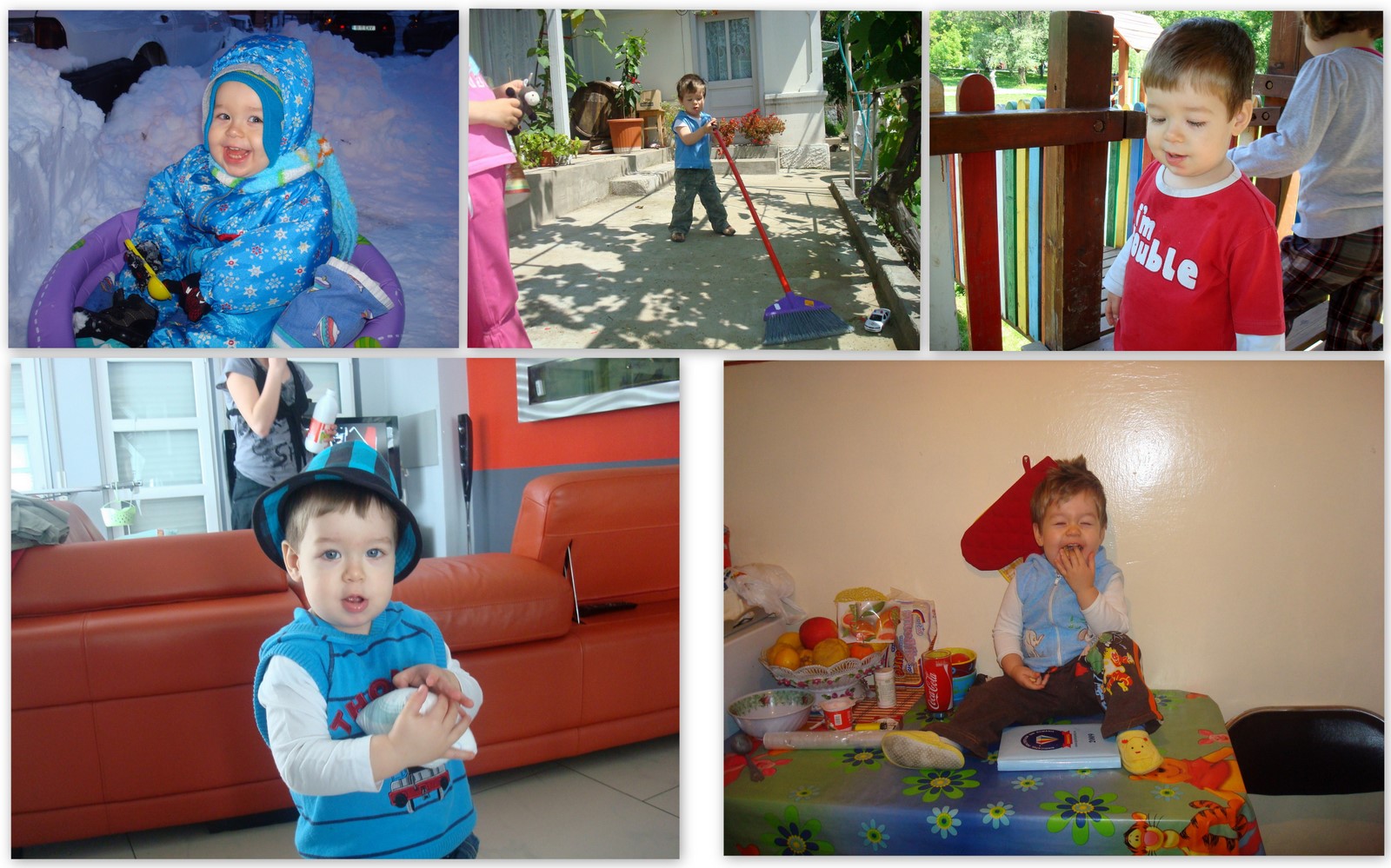 Nepoţeii Monicăi Olteanu – În primele 4 fotografii este David. Este băieţelul mic al surorii mele, stabilite de caţiva ani în Spania. Fotografiile sunt făcute anul trecut în august, când eu am fost la ei, atunci avea un an şi 6 luni. Am stat cu el o lună jumate şi m-am indragostit de el nebuneşte….:) Urmatoarele 4 sunt făcute în septembrie 2009. În aceste fotografii sunt Cosmin şi Iustina. Atunci când au fost făcute fotografiile aveau 3 ani şi 3 luni. Adică acum în iunie, pe 19 ei vor face 4 ani.:) Ţin să-ţi spun ca ei nu sunt gemeni. Nu sunt fraţi. Sunt verişori. Da, nascuţi în aceeaşi zi:P Cosmin e primul şi singurul copil al unui frate mai mare! Un copil foarte dorit, aşteptat 7 ani din cauza unor probleme de sănătate ale mamei lui:) Iustina este copilul cel mic al altui frate al meu, celui mai mare frate. Este un copil dorit! A venit dupa fratele ei la o distanţă de 10 ani!!!