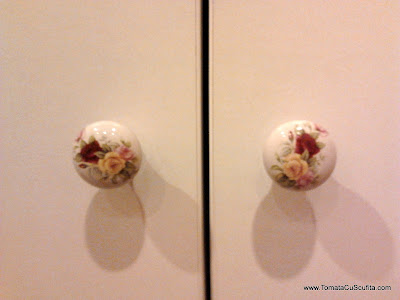 Înainte de a vă trimite la pozele din albumul de pe Facebook ca să-l vedeți, vă spun că oricât de frumos era amenajat salonul, eu m-am îndrăgostit de baie. În special de mânerele dulapului și de săpunieră (dacă așa i-o zice).