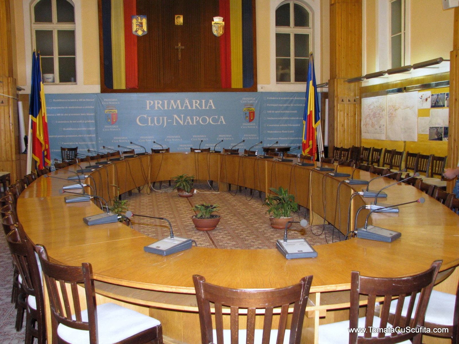 În mailul de prezentare al programului, Alina ne spunea că joi dimineaţa, la ora 8, dl Emil Boc ne va aştepta la primărie. Unii pot spune: „Na, şi ce mare brânză?” Alţii pot spune: „Da’ de ce? Ce-au bloggerii atât de special încât primarul să-şi facă timp de ei, nu mai bine îşi vede de treaba lui?” Alţii pot spune: „Bravo, dom’ primar!”. Eu am ales să spun ultima chestie pentru că această întâlnire mi s-a părut un gest foarte tare. De obicei, primarul (orice primar) nu e uşor de abordat, mai ales in chestiuni de genul, cel puţin din câte citesc şi aud eu de prin ziarele online (pe care le citesc rar înspre deloc). Aşa că, să-şi făcă timp, chiar şi o oră, să stea la masă cu nişte turişti (la urma urmei asta eram), care mai apoi îi pot promova oraşul, eu zic că nu-i lucru mic. Mai mult de-atât, mi-a plăcut peste măsură de mult faptul că dl Emil Boc e prezent pe Social Media. Are cont de Twitter şi pagina de Facebook, pe care şi le administrează singur. Pe drumul spre Cluj primisem follow de la dumnealui şi mă gândeam că sigur e cineva din staff-ul lui, care încearcă să facă impresie şi să ne bage puţin în seamă, să ne simţim şi noi speciali. Spre seara, când am dat un twitt în care spuneam că aştept întâlnirea de a doua zi cu nerăbdare şi cu curiozitate, dl Emil Boc ne-a răspuns, la ora 23 şi ceva, tuturor celor care dădusem twitt-uri pentru el, că ne aşteaptă a doua zi. Mie, sincer, mi-a plăcut asta atât de mult, încat uite, o scriu şi pe blog, să afle cât mai multă lume cât de cool e dl. Boc.