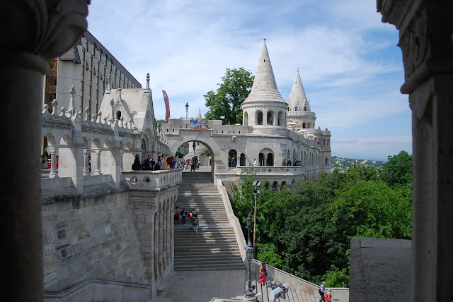 Am văzut-o pe alb, am ținut să o văd și pe verde. Ar fi trebuit să mergem de sâmbătă pe duminică, dar am renunțat din dragoste pentru câine. Așa că duminică am tras o fugă până la Budapesta. Bine, aveam treabă acolo, trebuia să o recuperăm pe mătușa mea care se întorcea cu avionul de la Berlin. Și cum eu nu ratez nici o ocazie de ieșit din țară, m-am oferit voluntară. Am avut câteva ore bune de umblat prin cele mai populare locuri, chiar dacă le mai văzuserăm. Dar cum locul meu preferat din Budapesta e Bastionul Pescarilor, tare mi-am dorit să-l văd și străjuit de pomii înfrunziți, nu doar îmbrăcat în zăpadă. Iată-l: