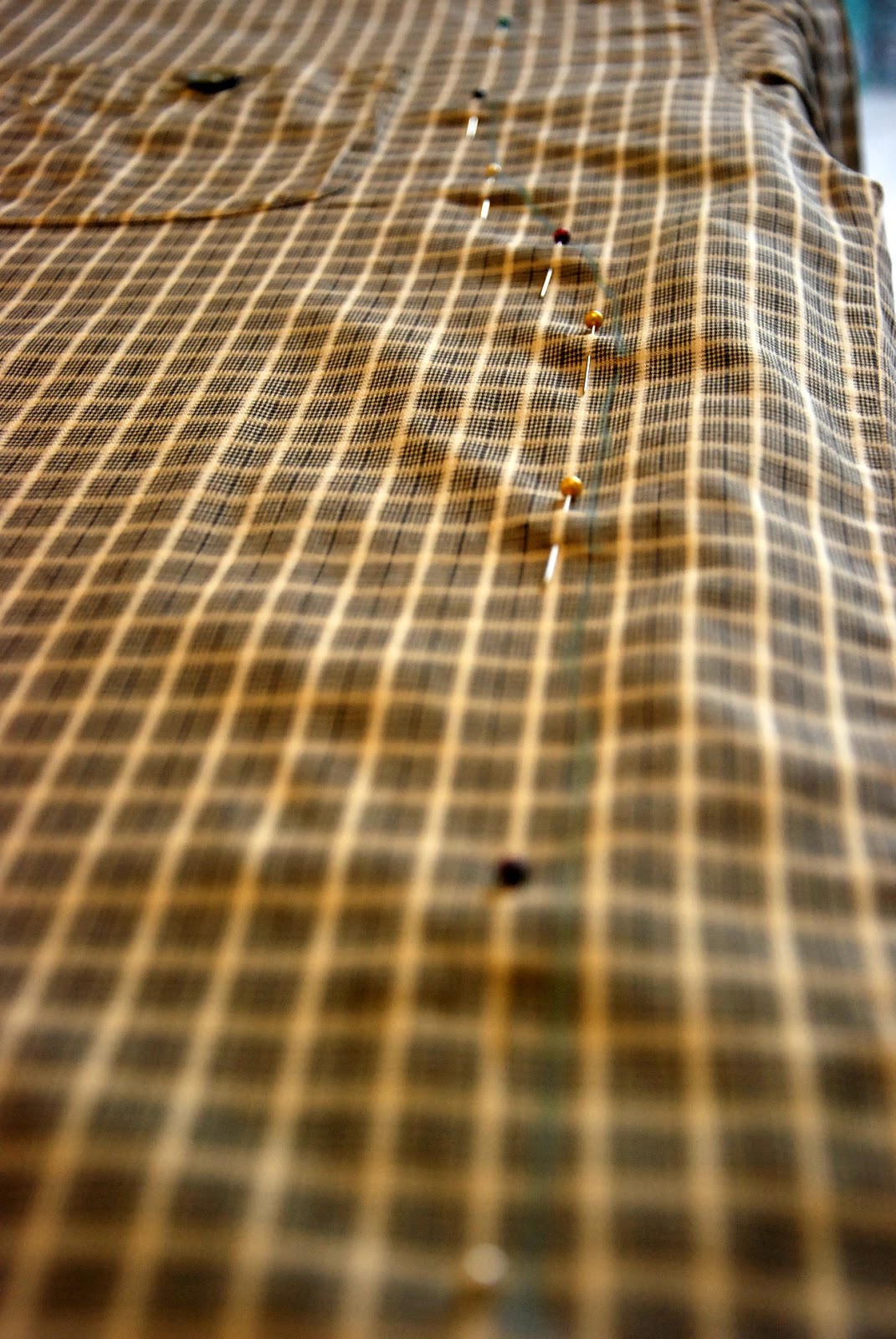 Am îndoit rochița în două să pot cumva repara burta. Nu mi-a ieșit, de-asta a ajuns cămașă și n-a rămas rochiță. Odată ce-am rezolvat-o cât de cât, am trecut la partea cu mânecile, care mi se părea o adevărată provocare. Abia atunci mi-a picat fisa să-mi iau o altă cămașă din dulap să vad cum sunt mânecile făcute de profesioniști. Am măsurat, am fixat în ace și-am tăiat.