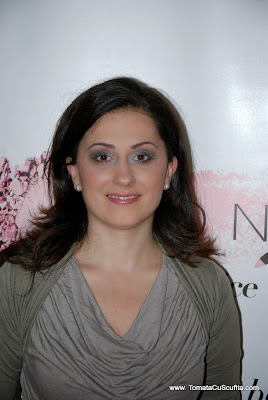 Doamna care m-a machiat pe mine m-a întrebat dacă vreau smokey eyes. Vreau, cum să nu vreau? Și s-a apucat de fața mea, m-a demachiat (chiar dacă nu purtam make-up), m-a dat cu cremă hidratantă și apoi cu fond de ten. Având la activ două sesiuni recente de make-up, am făcut o comparație între make-up artiști: unii aplică fondul de ten la început, alții după ce a fost aplicat fardul de ochi. Am primit și explicația pentru care se aplică la sfârșit, pentru că mi se părea puțin ciudat, dar e perfect logică: la aplicarea fardului pe pleoape se scutura de pe pensulă și poate lăsa dungi pe fondul de ten aplicat la început. Așa, poți să mături surplusul căzut pe obraz și poți acoperi imperfecțiunile cu fond de ten fără să întinzi și culoarea de la ochi. Eu procedez ca și make-up artistul de la AVON, adică îl aplic la început, pentru că nu-s așa profesionistă să pot să-l întind perfect după ce m-am machiat în totalitate. Apoi, mi s-au conturat sprâncenele, înainte de machierea ochilor. Am dedus că ar trebui să fac asta mai des pentru că chiar îmi plac sprancenele mele conturate fie cu creion special, fie cu fard. Mi s-a aplicat conturul pentru smokey eyes, apoi fardul și la urmă rimelul. Din păcate, asta nu mi-a plăcut și vreau să fiu sinceră cu voi. Nu mi-a plăcut felul în care mi s-a aplicat rimelul pe gene. Dintre tot ce pot scoate în evidență prin make-up de pe fața mea, eu aleg întotdeauna genele. Și ele au fost cele mai ignorate. Adică au fost vopsite foarte puțin și deloc insistent. E drept că nici n-am îndrumat-o pe doamna care mă machia, nu i-am spus ce-mi place, ce nu-mi place, ce-mi fac eu de obicei și cum sunt obișnuită să fiu măchiată. Deci nu e musai vina ei pentru faptul că genele mele nu erau încărcate de rimel. Ăsta-i produsul înainte să retușez eu cu “bidineaua” neagră (am constatat că maroul nu mă prinde prea bine).