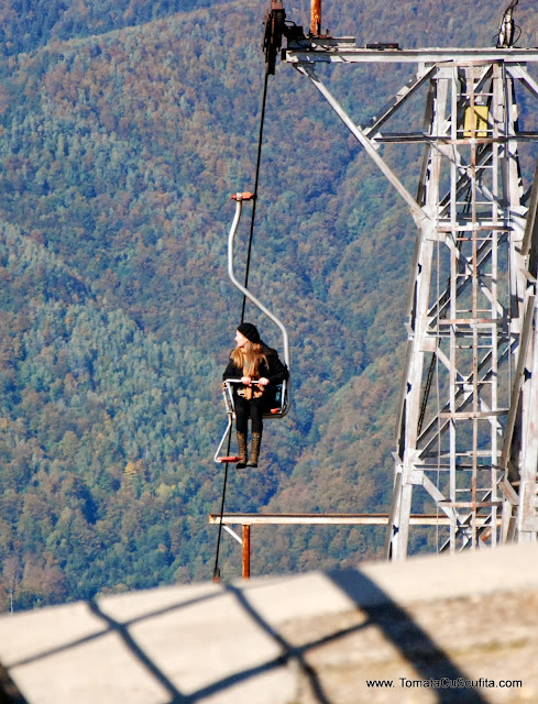 Nu mă dau în lături de la nici o experiență nouă – bine, numai de la alea culinare – așa că telescaunul era o propunere care-mi surâdea. Nu era prima oară când mă urcam în el, dar singura dată când am mai făcut-o a fost în brațele tatălui meu, undeva pe la Predeal. Cred, nu sunt sigură, trebuie să o întreb pe mătușa mea.