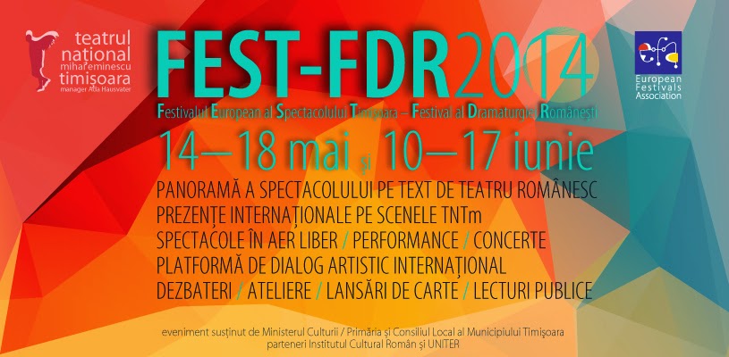 Promit să mă adun, că acuș se încheie stagiunea și trebuie să așteptați până la toamnă dacă vreți să vedeți vreun spectacol pe care l-am văzut și eu. Dar acum am un anunț de făcut: începe Festivalul European al Spectacolului Timișoara – Festival al Dramaturgiei Românești sau, pe scurt, FEST-FDR. Festivalul se desfășoară în lunile mai și iunie între datele 14-18 mai și 10-17 iunie.