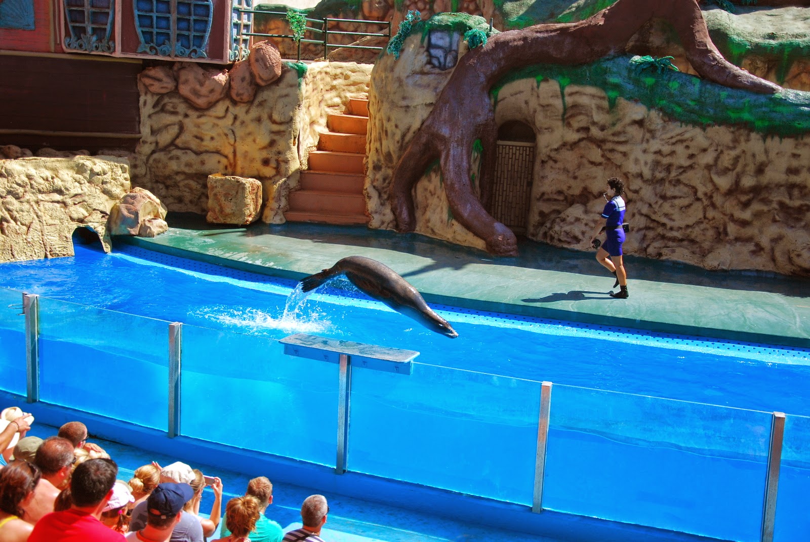 Următorul spectacol a fost cel cu foci și lei de mare. Un fel de scenetă cu un Robinson Crusoe feminin, care trăiește pe o insulă pustie împreună cu focile.