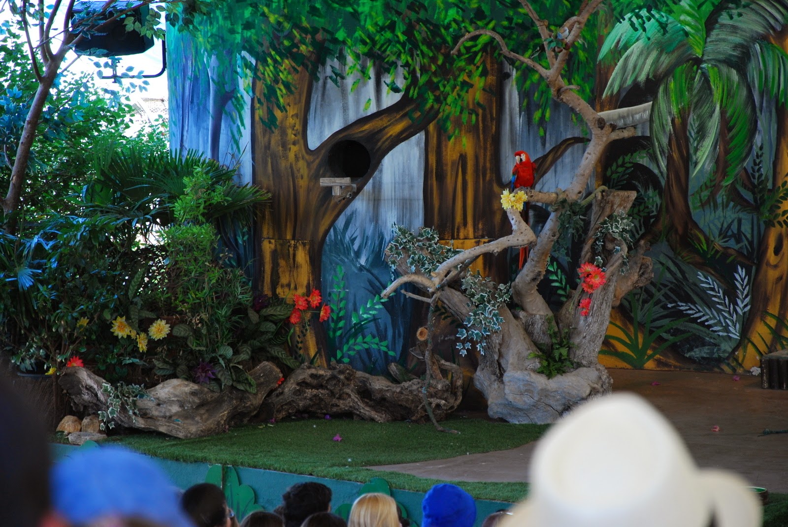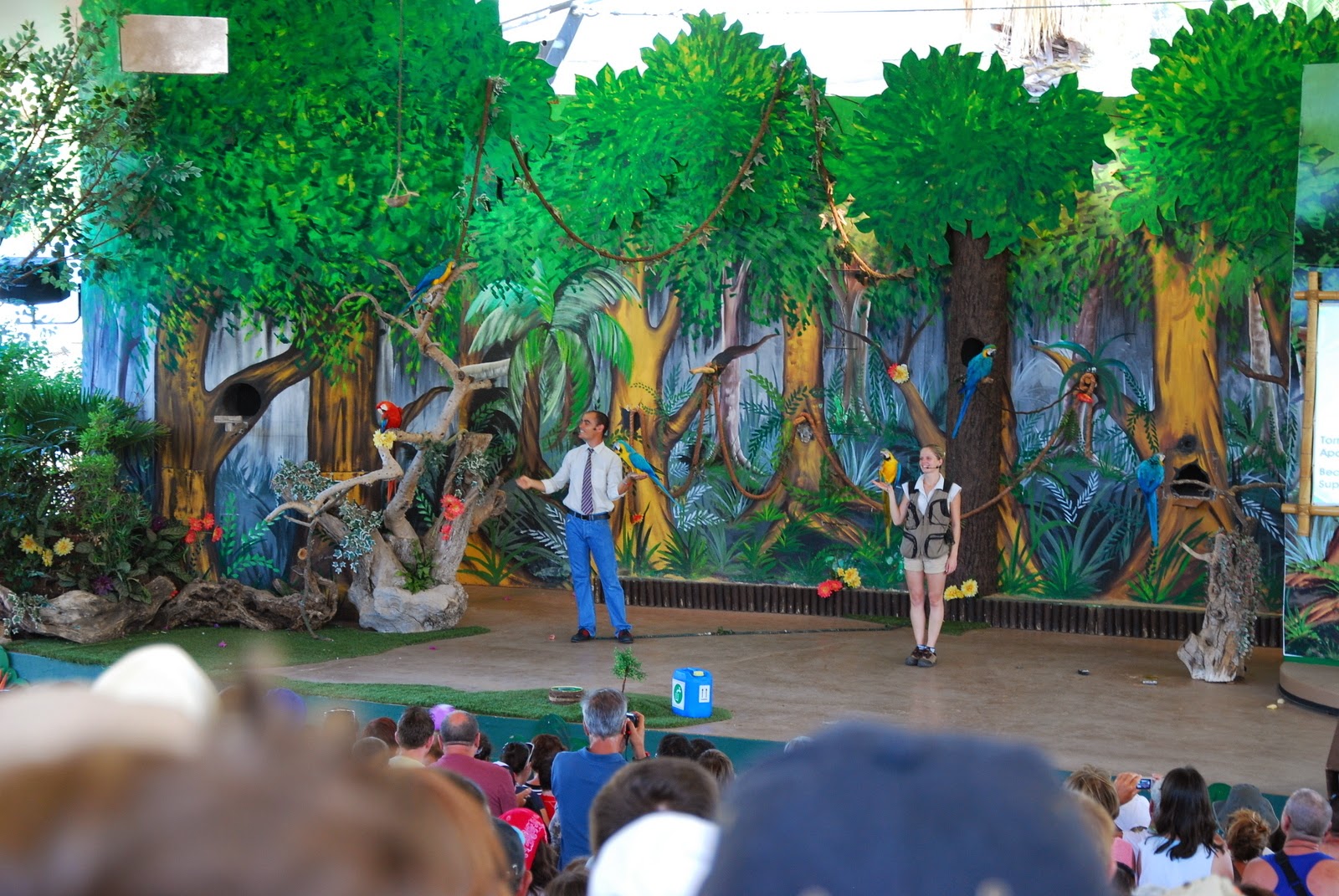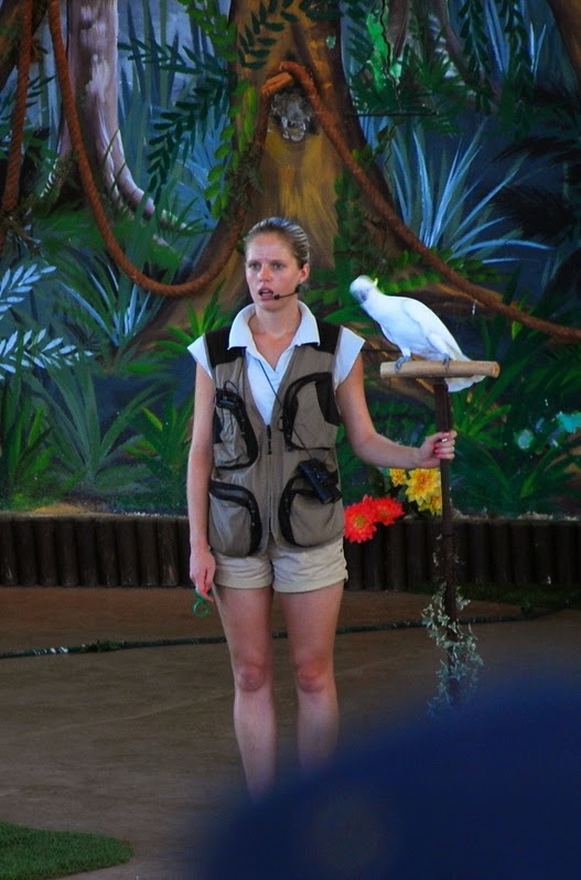 După foci și lei de mare, ne-am dus la spectacolul cu păsări exotice. Mai exact cu papagali. Simpatici și ei și prezentatorii și show-ul.