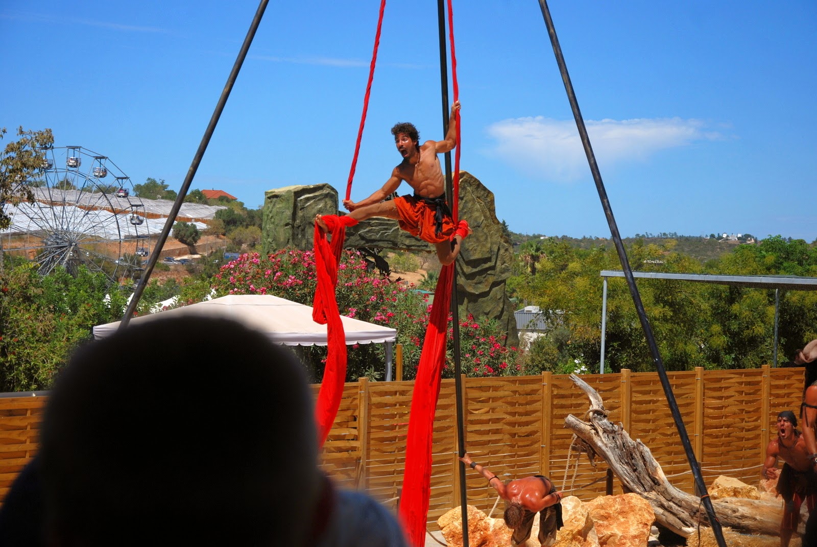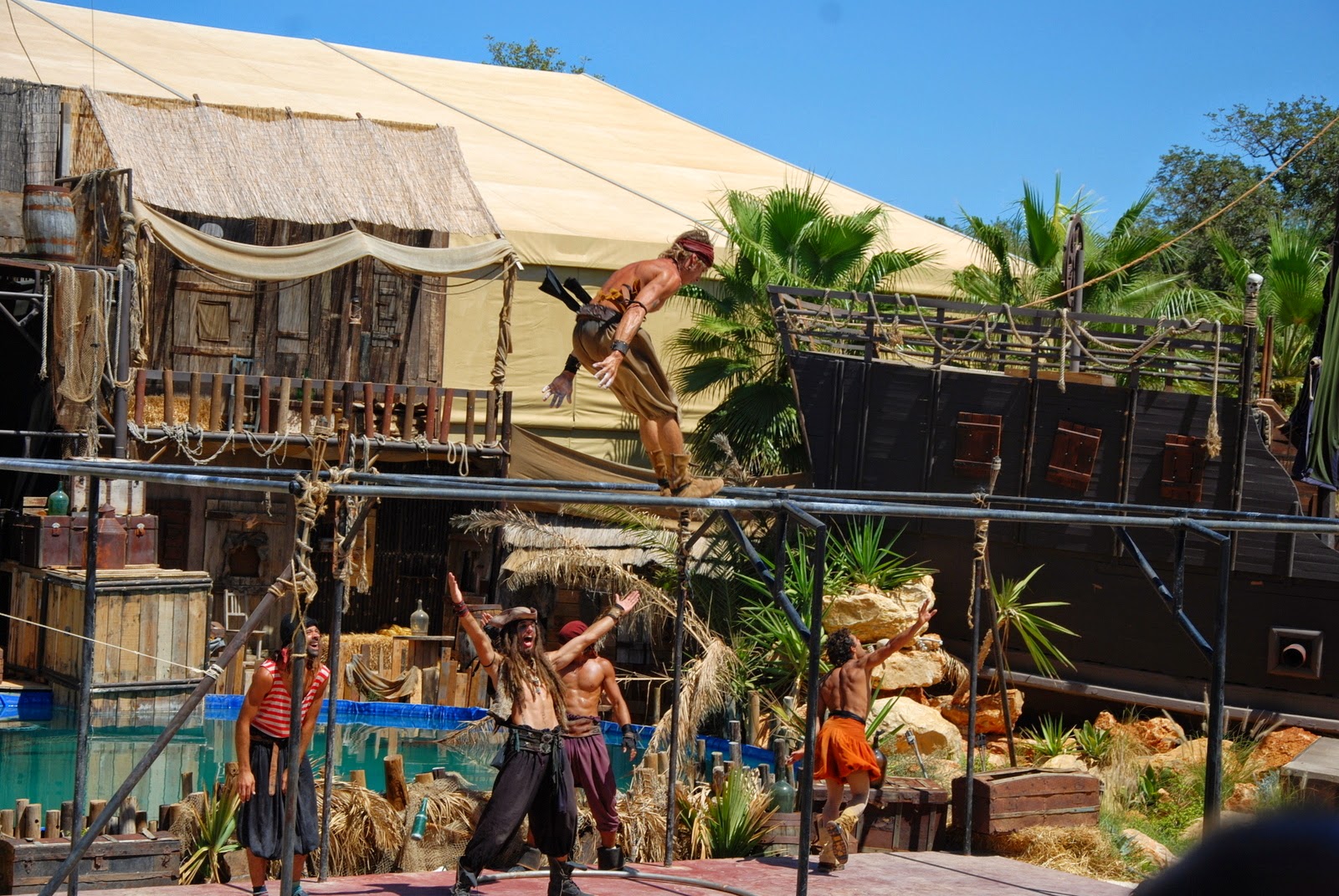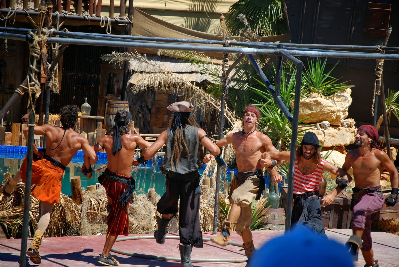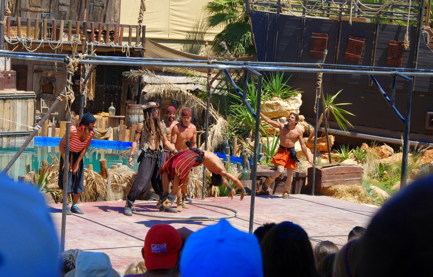 După păsari, Sotzu a vrut musai să mergem la un spectacol de acrobații cu pirați. Ne-am dus și ne-a plăcut. Au sărit ăia pe acolo dintr-o parte într-alta, de sus în jos, de la stânga la dreapta. S-au înfășurat în panglici, au sărit în apă. Mișto de tot.