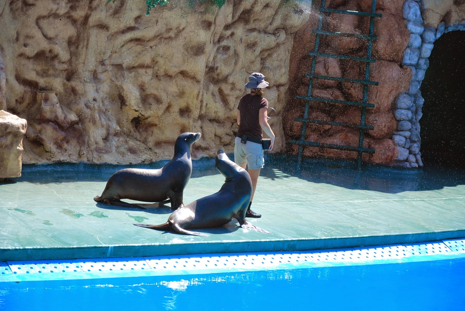 Următorul spectacol a fost cel cu foci și lei de mare. Un fel de scenetă cu un Robinson Crusoe feminin, care trăiește pe o insulă pustie împreună cu focile.