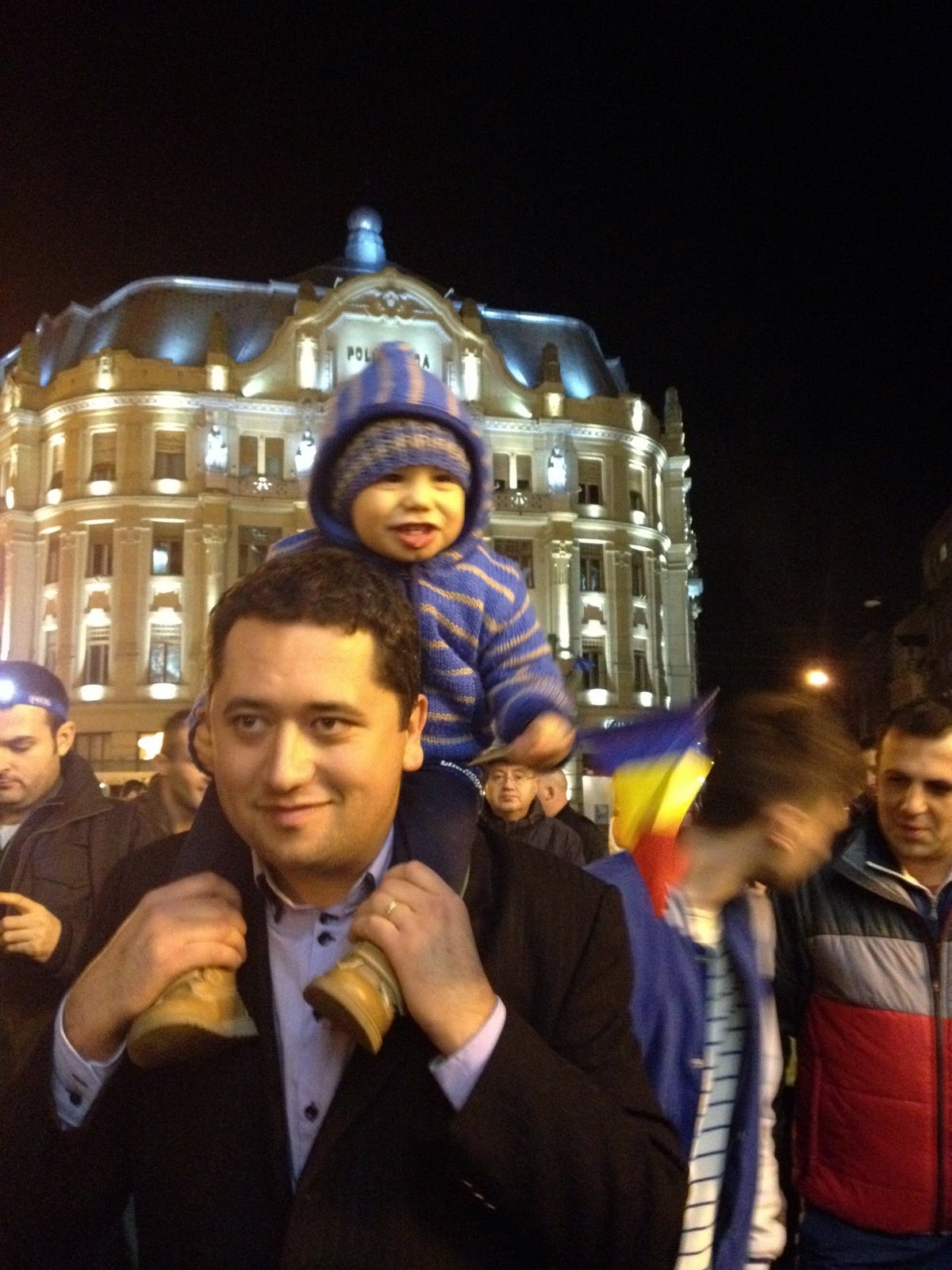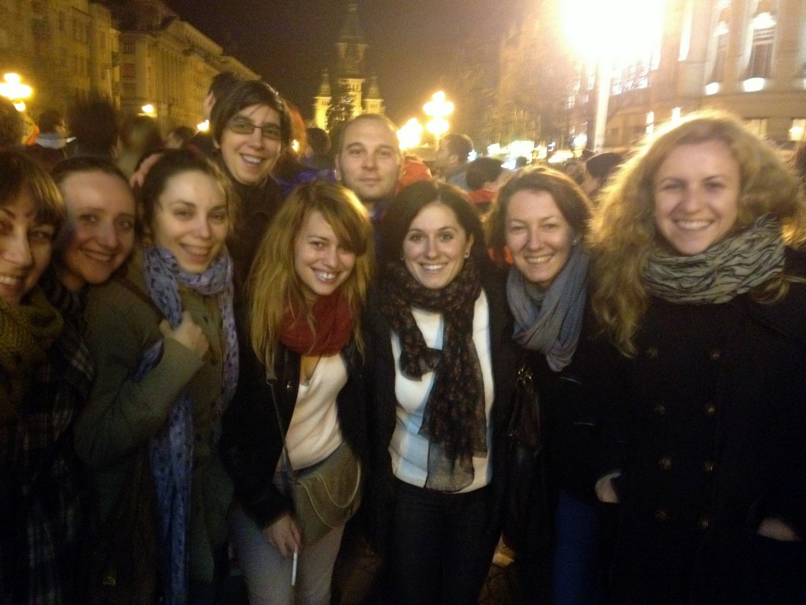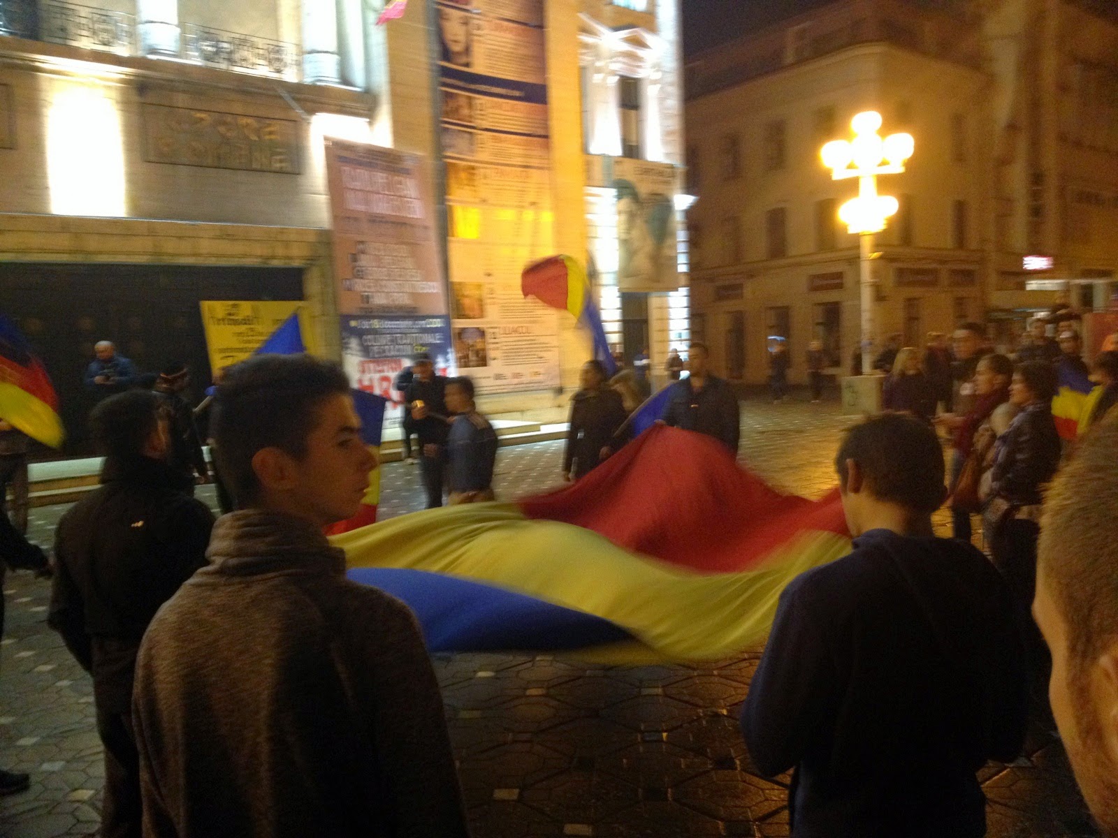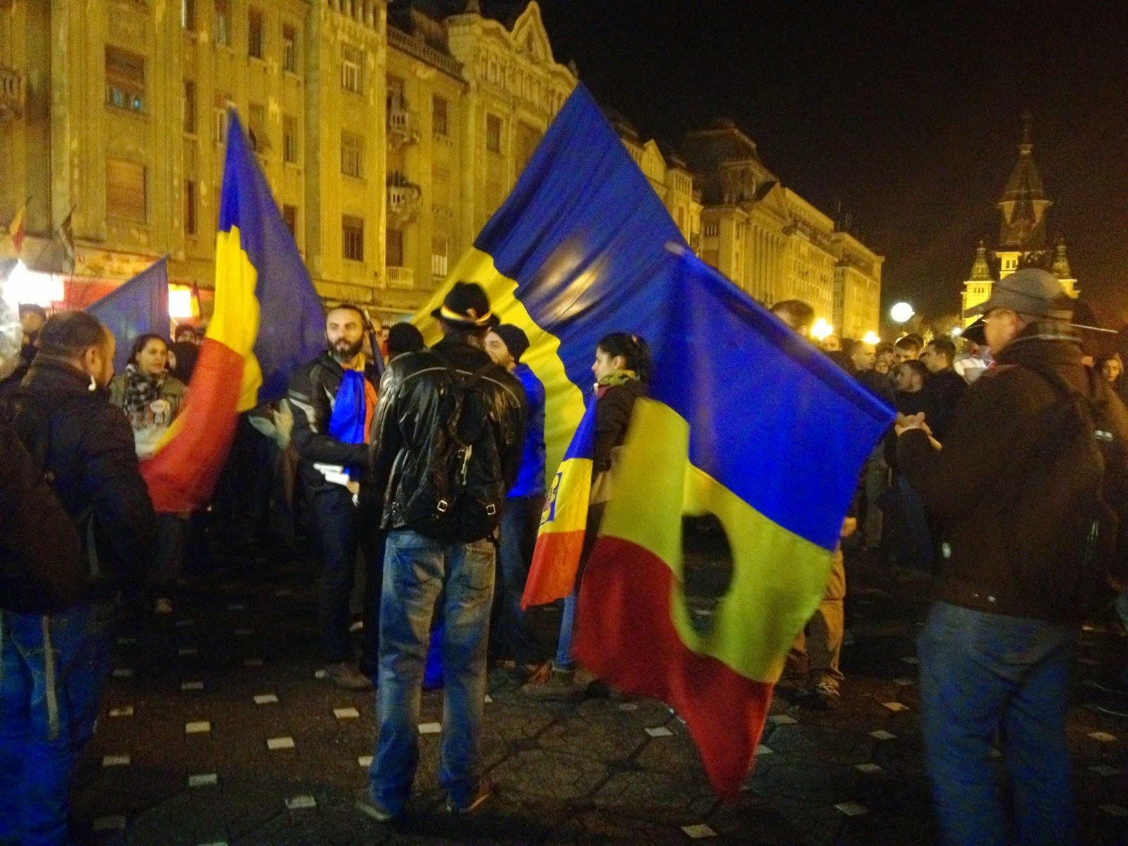 Trebuia să scap de toată tensiunea, să exorcizez toți dracii care jucau hora prin mine, așa că m-am dus cu Anca, Elena, Nebu, Cristina, Richie, Dan, Alexandra, Cristi și alții în Centru să scandăm. Nu știam pentru ce, dar aveam nevoie de o eliberare. S-au strigat de toate în Centru, de la „Cine nu sare, cine nu sare, ori este cu Ponta, ori e prost de moare”, până la „Klaus, Klaus, scapă-ne de Mickey Mouse”, „Victorie”, „Libertare”, „Demisia”, „Ponta, nu uita, Timișoara nu te vrea” etc. A fost și-acolo o avalanșă de emoții, dar cel mai puternic a fost solidaritatea cu diaspora. Citeam fiecare câte un status al prietenilor de prin Germania, Italia, Franța, Anglia, Spania și ne întristam pentru ce se întâmplă. Pentru gazele de la Paris, pentru ploaia de la Munchen, pentru toți cei care străbătuseră sute de kilometri pentru a-și exercita dreptul la vot. Pentru ei am scandat cel mai mult, pentru că lor, de acolo de departe de casa lor le-a păsat mai mult de viitorul țării decât le-a păsat unora cărora le-a fost lene să-și miște fizicul până la secțiile de votare, goale, la 5 minute de mers pe jos.