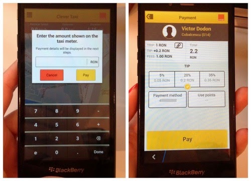 cea mai interesanta caracteristica a aplicatiei mi se pare, de departe, cea care ofera posibilitatea platii cu cardul sau prin sms. Cel mai des calatoresc cu taxiul spre si de la aeroport, fie foarte devreme dimineata, fie foarte tarziu noaptea, si mi s-a intamplat de f multe ori clasica scena “nu am sa va dau rest, e prima cursa”. Dincolo de faptul ca din punctul meu de vedere, ca si client, e inacceptabil sa ti se spuna asa ceva, ma bucur sa aflu ca exista o varianta care ma poate ajuta sa evit aceasta situatie penibila.