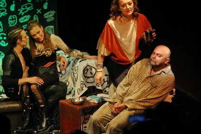 Dacă ați citit Cimitirul, poate știți despre ce limbaj vorbesc. Dacă ați văzut Daddy, la fel. Dacă n-ați citit nici una, n-ați văzut nici pe cealalată, pregătiți-vă ochii și urechile să audă și să vadă multe. Daddy e un spectacol „hardcore”, ca să citez pe cineva care ne-a vorbit despre el. Veți vedea sărutându-se bărbați cu bărbați, femei aflate la a doua tinerețe cu tineri, frate cu soră și puțin lipsește să se sărute și tatăl cu fiica. Daddy spune povestea unui bărbat care și-a abandonat cei doi copii, lăsându-i să crească singuri, având grijă unul de altul. Au crescut cum au putut și-au recurs la soluții care să-i scoată din mizerie și din sărăcie. Iar drumul către bani, lipsa părinților care să-i îndrume, absența unei educații școlare, toate duc în același loc: la golirea sufletului și uneori și-a minții. În timp ce băiatul e o curvă masculină, care le face pe plac domnilor pentru câteva sute de euro, fata, obișnuită cu îngrijitul celor de lângă ea, se angajează la un azil de bătrâni. Când apare tatăl lor, cu tot cu dorința de a avea grijă de ei, o face prea târziu. E bolnav și ajunge o legumă, întocmai ca pacienții de care are grijă fata. Cei doi se poartă cu el așa cum s-a purtat și el cu ei, adică îl ignoră cu bună știință, își bat joc de el când el nu se poate nici mișca, nici vorbi, și nu-i întind nici măcar un pahar cu apă.