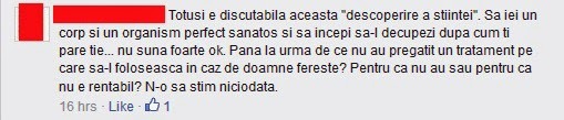 Bun, astea-s introducerea și datele problemei și-acum să atacăm o părere de pe Facebook (atenție, nu persoana, că de-aia am și ascuns numele și poza), pentru că, de ce nu, cu toții suntem datori să debităm prostii.