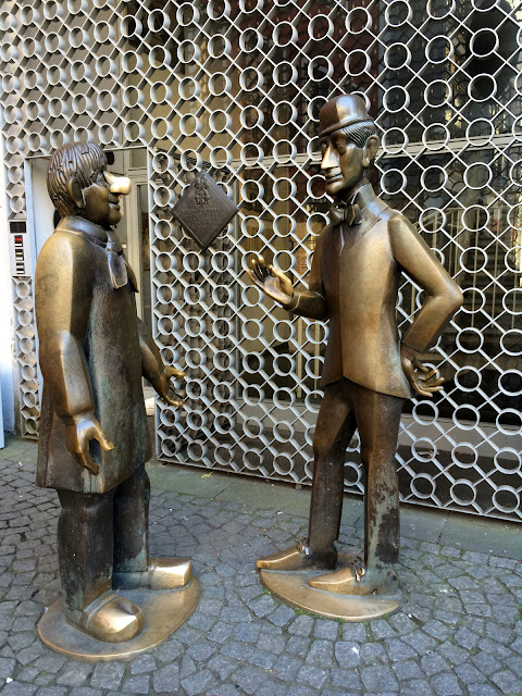 A doua zi știam deja că mă așteaptă o plimbare de 40 de minute până în Centrul Vechi, așa că m-am obișnuit cu ideea și după somnul de prânz al Adei, ne-am dus încet către alte obiective. În cale ne-au ieșit pietrele aurite în memoria evreilor despre care am scris aici, dar și podul Hohenzollern, plin-PLIIIIIN de lacăte.