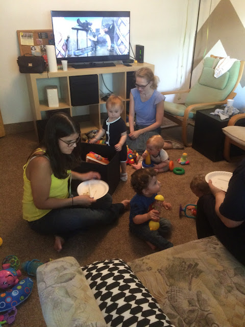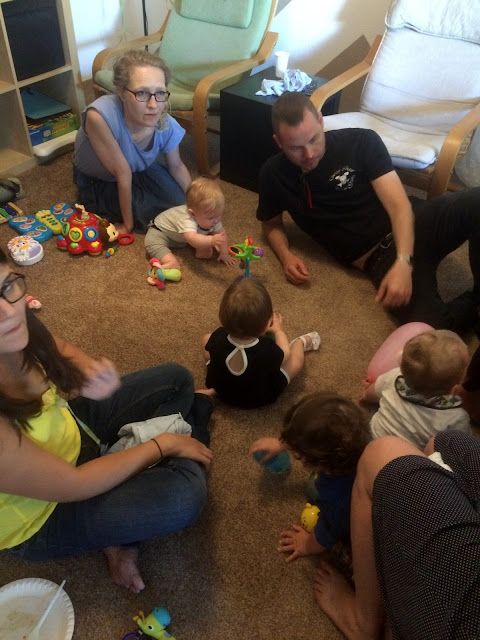 Pentru Ada, adevărata petrecere s-a dat departe de copii, în camera ei/biroul Sotzului, unde era parcarea de cărucioare. Obsedată fiind de roțile lor, abia am luat-o de acolo și cu greu am ținut-o în mijlocul oamenilor. Cum prindea ocazia, cum țuști printre roți. Măcar i-a distrat pe invitați. Și pentru că nu dormise aproape deloc înainte să vină, a apucat-o moțăiala în toiul petrecerii. A trebuit s-o duc s-o culc și a adormit în clipa în care am pus-o pe pat. O oră și jumătate și a fost ca nouă.