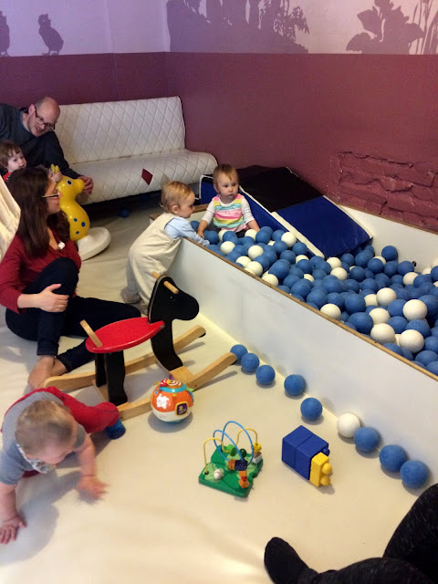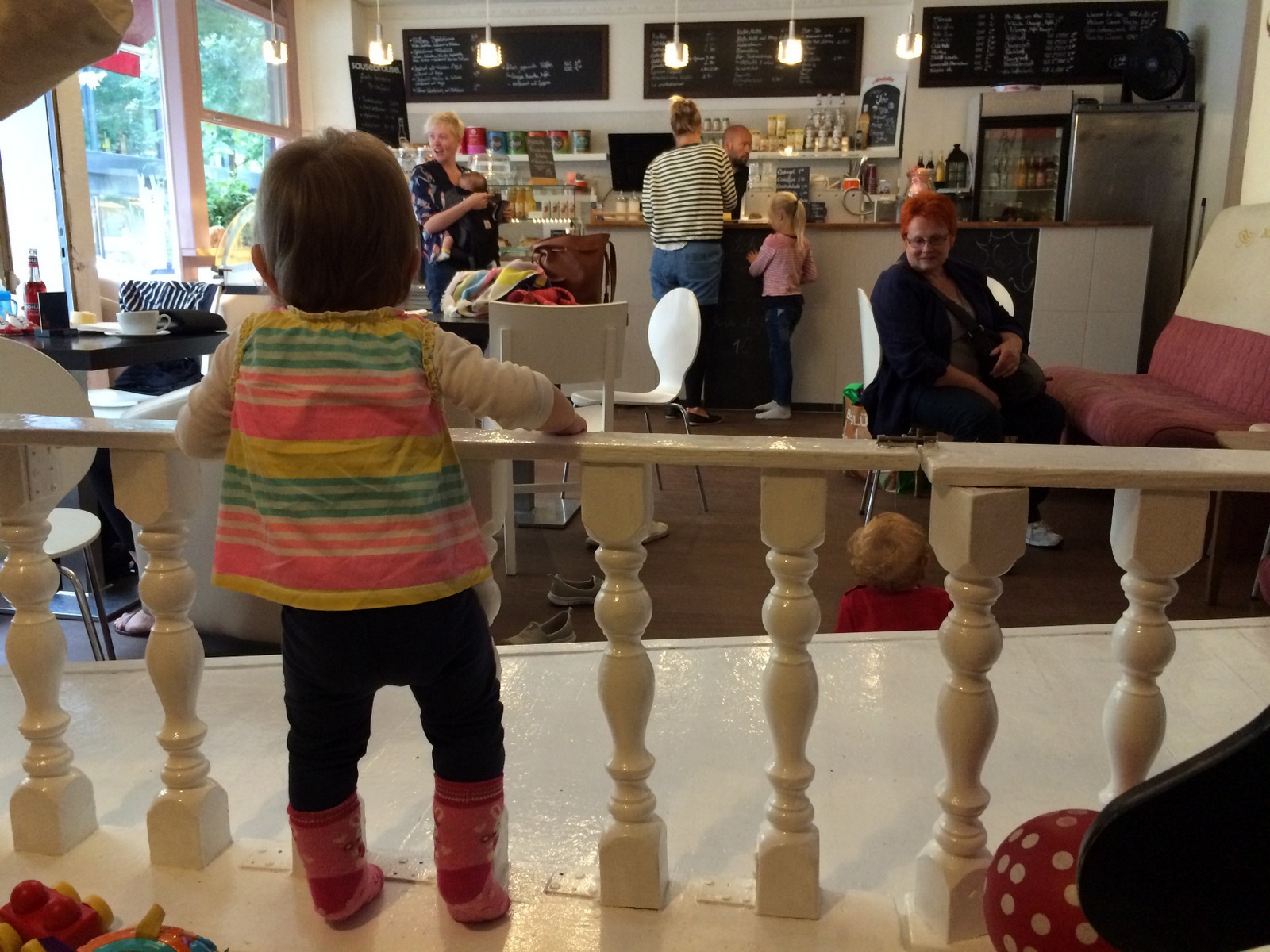 Întâlnirea la Kindercafe – când Celia (portugheza) a organizat întâlnirea săptămânală, mulți bebeluși erau încă în burtă. Acum au aproape toți peste 6 luni, 3 au deja 1 an, deci sunt mobili. Cafeneaua în care ne strângeam a devenit neîncăpătoare, așa că ne-am mutat la o cafenea special amenajată pentru copii. E plin de ele în Berlin. Și, în timp ce copiii se joacă, mamele pot mânca o prăjitură și bea o cafea. Ma rog, „pot” e un fel de a spune, pentru că fie trebuie să te joci cu ei, fie să-i supraveghezi întruna, deci cam atât a fost cu socializarea între mame.