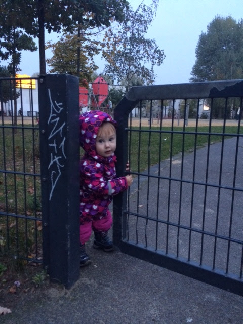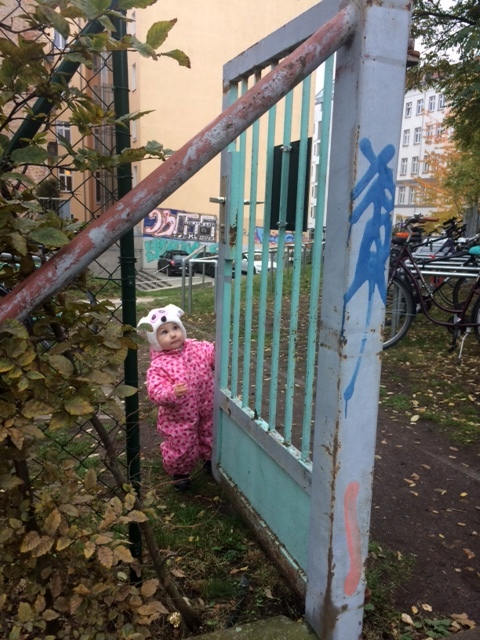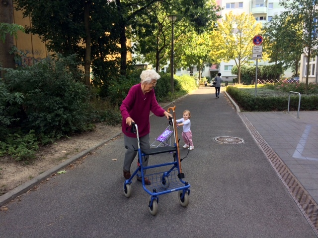 – în timpul vizitei, Ada a descoperit căruciorul de jucărie, așa că a doua zi i-am luat și ei unul de la flohmarkt. Când ne-am întors s-a întâlnit cu o bătrânică de la azilul de bătrâni din cartier și a provocat-o pe Ada la o întrecere. Dar încă nu îl manevra cum trebuie, așa că a abandonat cursa.