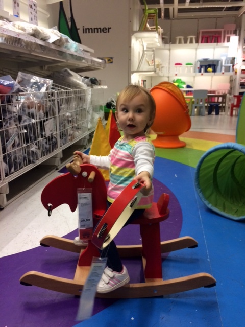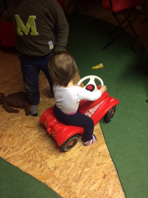 – încă o jucărie preferată, descoperită la Kindercafe și la IKEA. Nu i-o luăm pentru că are deja două mașini pe care le conduce prin casă. Și-un cărucior de jucărie. Îi ajung.