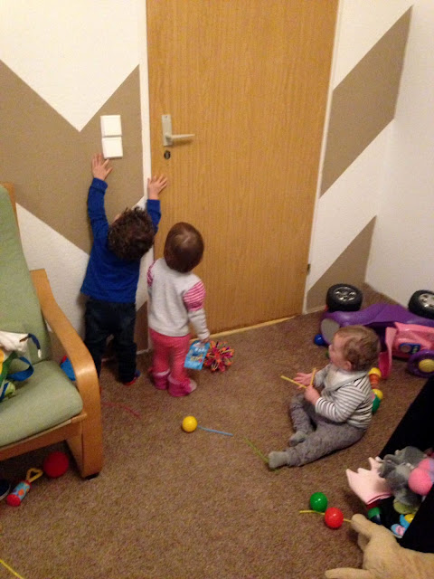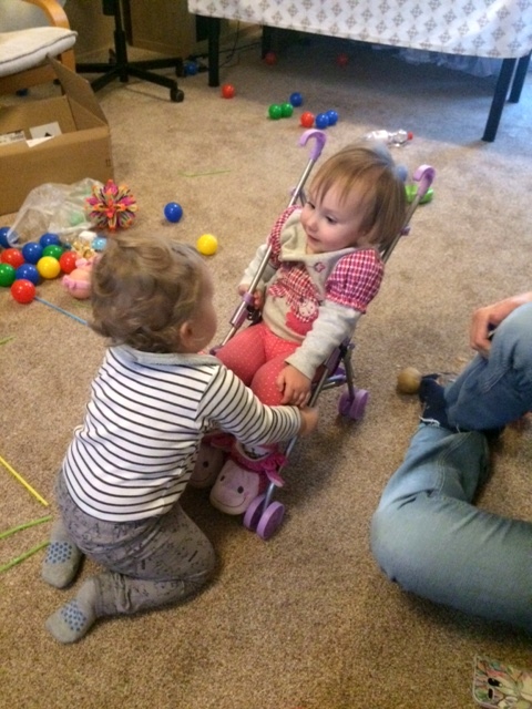 – acum două zile am găzduit un playdate, la care au putut veni doar două mame cu băieții lor. A fost tare fain, am mai putut vorbi și noi una-alta, în timp ce copiii se jucau ori împreună, ori fiecare singur. Cel mai distractiv a fost partea în care Noah a plimbat-o pe Ada cu căruciorul de jucărie și Woolf a îngenuncheat în fața ei 😛