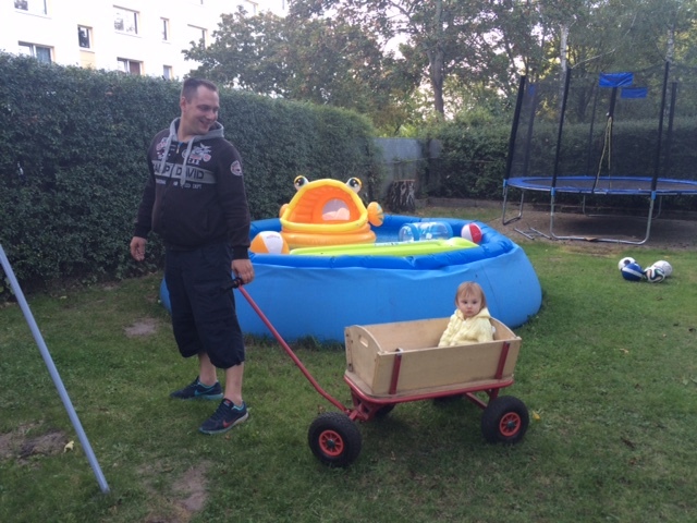 – din seria playdate-urilor, am fost la Maria și Andreas, care stau la casă și au o curte ca un parc de distracții, cu piscină, trambulină, huțulușe și… un caruț de-ăsta 😛
