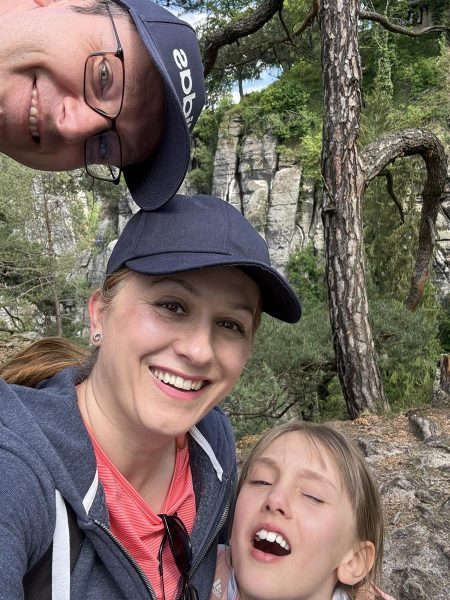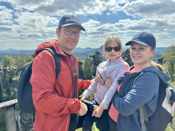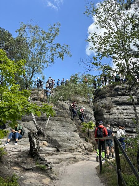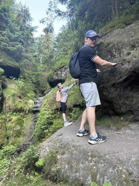 Miercuri nu prea am făcut nimic pentru că am ajuns târzior, eu eram trezită de pisică de la ora 3:45, deci căpiată de oboseală, așa că am mâncat, am băut un pahar de vin, am făcut duș și ne-am culcat. Ada adormise pe canapea uitandu-se la Ninjago pe tabletă. A doua zi, după micul dejun, ne-am echipat corespunzător, am umplut sticlele cu apă, am pregătit gustări și dulciuri și am pornit către ce ne-am propus să vedem joi. Deși am fost avertizați că va fi nebunie, cumva tot în zona Podului Bastei ne-am nimerit. Însă pentru că drumul către Schwedenlöcher era blocat am urmat mulțimea fară să știm exact că ajungem chiar la Podul Bastei.