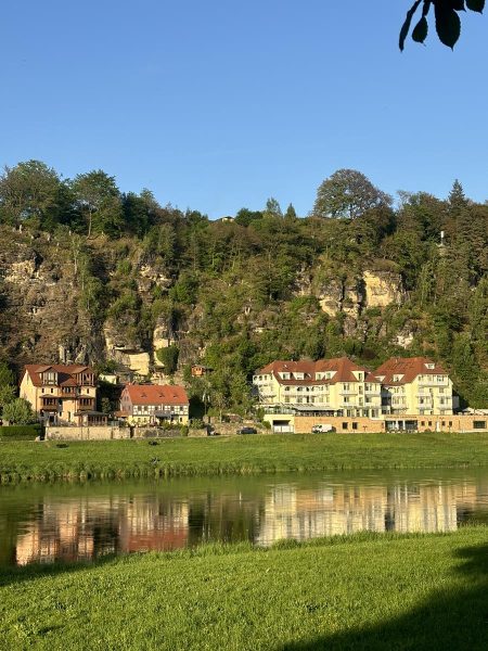 Continuându-ne drumul pe un fel de șosea, durerea de picioare s-a intensificat din cauza asfaltului, însă ne-am bucurat să ajungem la o casă tare veselă, cu pasări și plante exotice, cactuși în ghivece spânzurate prin copaci sau plantați în gradină. Am luat bacul spre următoarea destinație, către care am urcat alte scări înalte și epuizante, iar când am ajuns, era, de fapt o vedere către Fortăreața Königstein, nu ce credeam eu. Am fost dezamăgită.