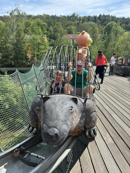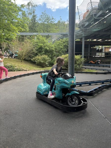 Ultima zi i-am făcut-o cadou Adei și am petrecut-o la un parc de distracții. Prețurile de intrare mai mult decât decente, dar cea mai faină treabă a fost că în proporție de 70% a fost operabil de către vizitatori. Doar un trenuleț, baloanele de apă, trambulina și taurul de rodeo necesitau angajați, în rest, totul se putea face de copii sau părinți. I-a plăcut foarte mult, am obosit-o bine și speram că o să doarmă în mașină, dar nu.