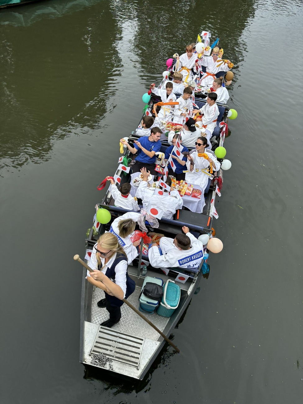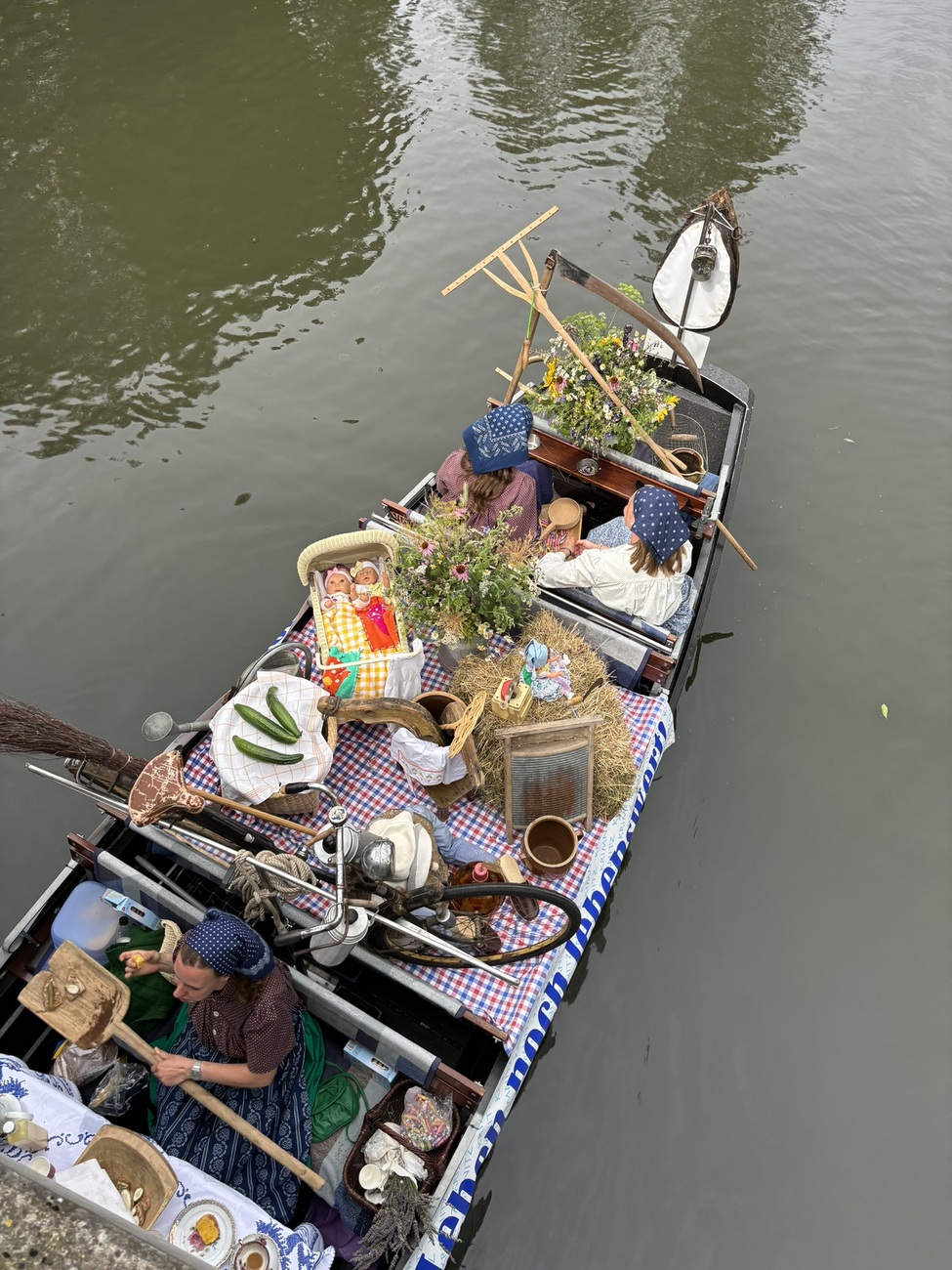 Ne-a bucurat coincidența pentru că destinația fusese aleasă destul de spontan, în special că surpriza a fost parada pe apă a organizațiilor și asociaților din zonă. Fiecare barcă avea ceva deosebit, de exemplu pompierii stropeau cu furtunuri, un duo care oferă concerte pe barcă au cântat așa fain la chitare, iar un dealer auto au adus un minibus electric, ceea ce pe mine m-a impresionat cel mai mult. Nu ajunsesem de la început, însă am prins cam de la jumătate. A fost cu muzică, aplauze, multă voie bună și cu bomboane aruncate din bărci către spectatori.