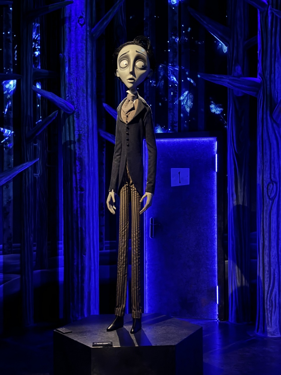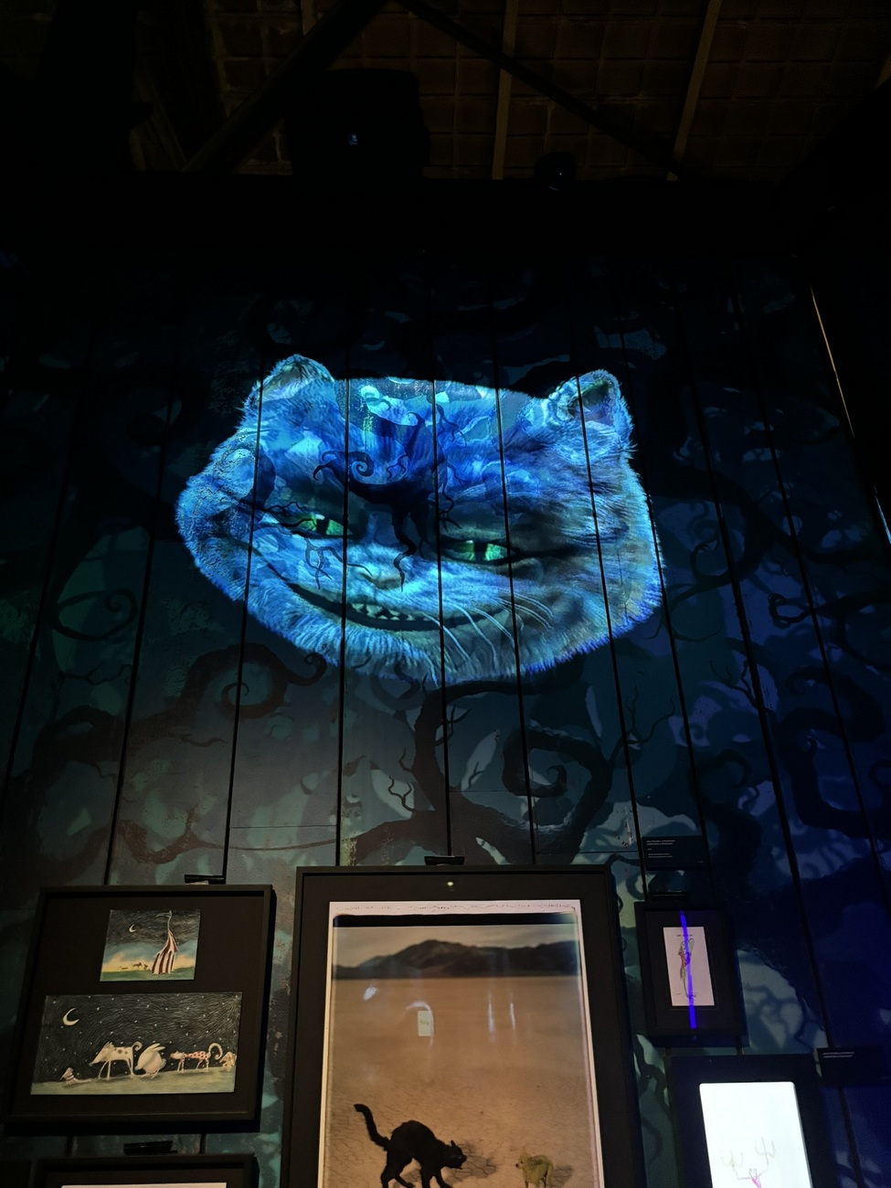 Expoziția constă în schițe desenate sau animate, dar in special din personaje celebre și cunoscute din toate filmele lui Tim Burton și se trece dintr-o încăpere în alta pe una dintre cele 2 sau 3 sau chiar 4 uși. Întocmai ca în Țara Minunilor.