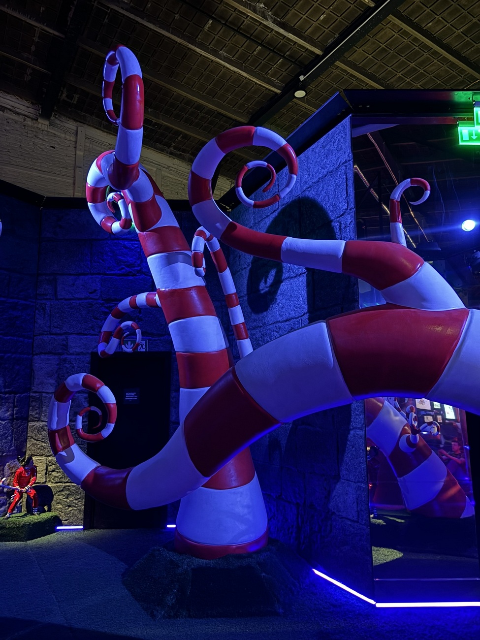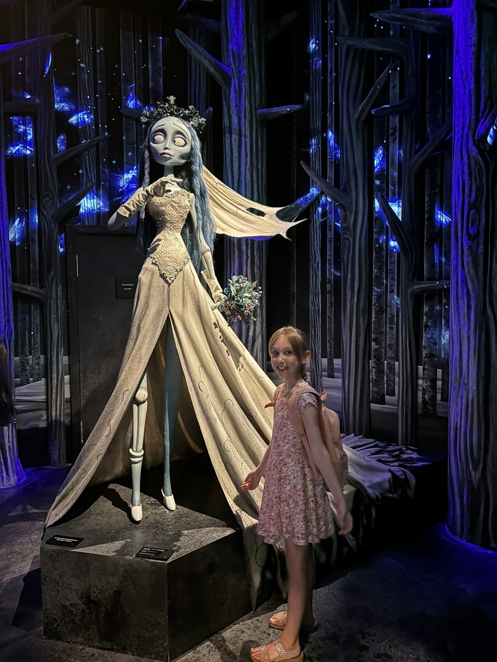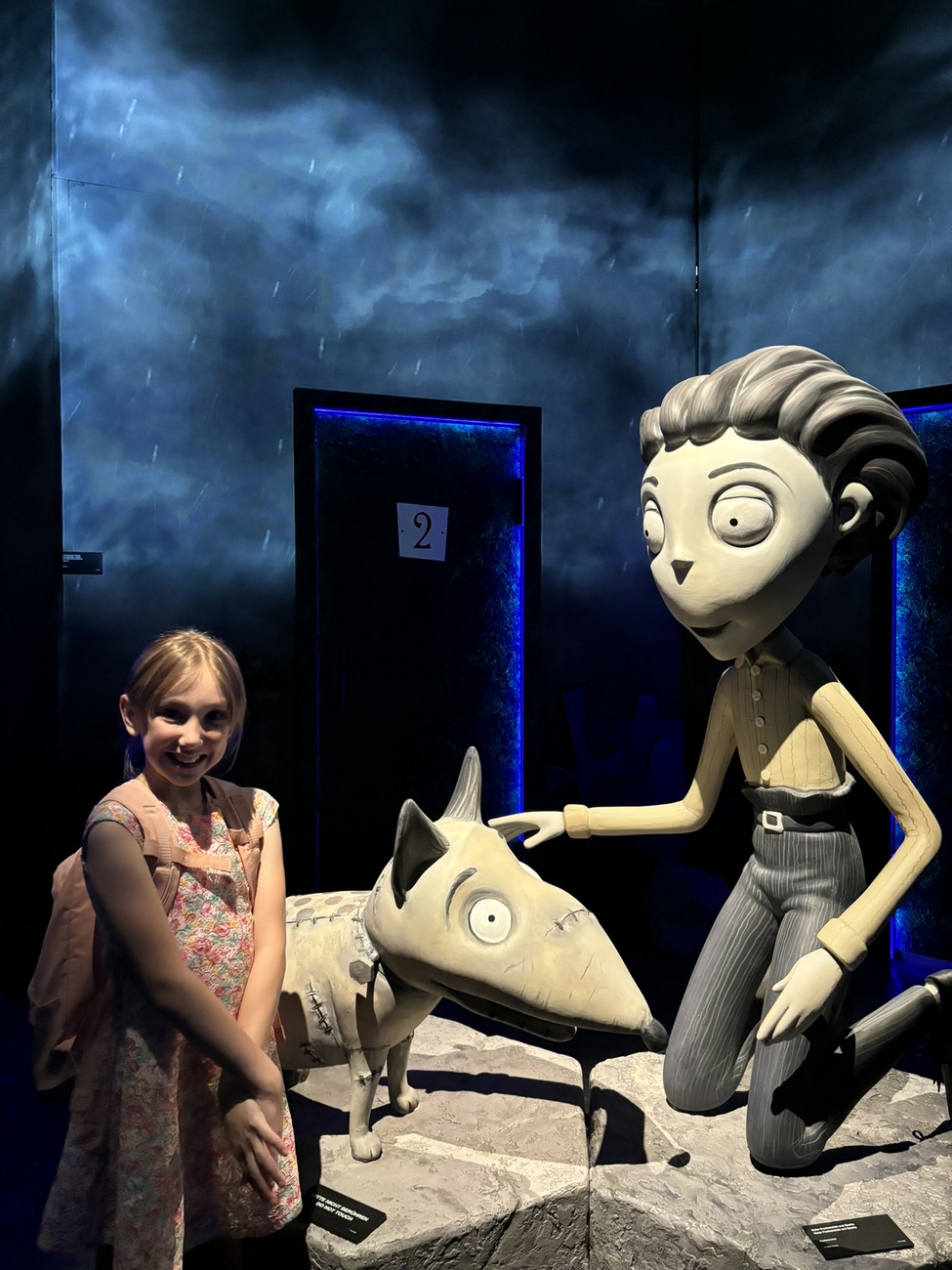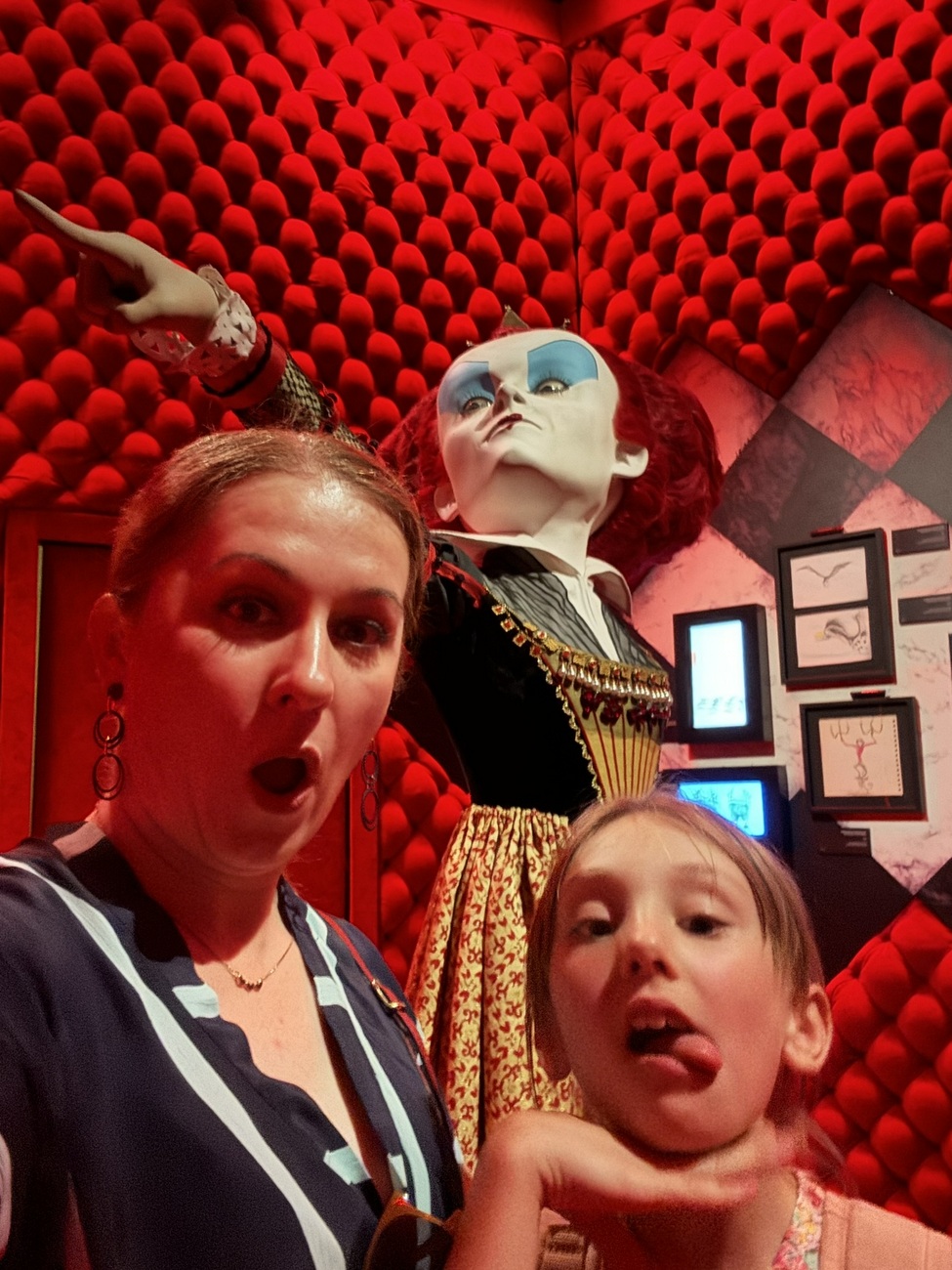 În cea mai toridă zi a anului noi am ales să ieșim din casă pentru a vizita noua experiență imersivă din oraș: Labirintul lui Tim Burton. Ne era bine în casă la răcoare, dar totuși ne-am hotărât să mergem până acolo și să ne întoarcem repejor acasă. Ada nu prea avea chef să se dezlipească de telefon, și nu știa cine-i Tim Burton, dar am combinat-o cu Wednesday. I-am spus că poate o vede și pe ea acolo. Din păcate nu era, presupun că e din cauză că labirintul se plimbă prin lume din 2022 și Wednesday abia în acel an a fost difuzat pe Netflix. Totuși n-a fost dezamăgită pentru că i-a recunoscut pe Oompa Loompas, pe Corpse Bride, Mad Hatter, Sparky și pe Regina Roșie, personaje pe care le cunoaște pentru că a văzut filmele sau animațiile.