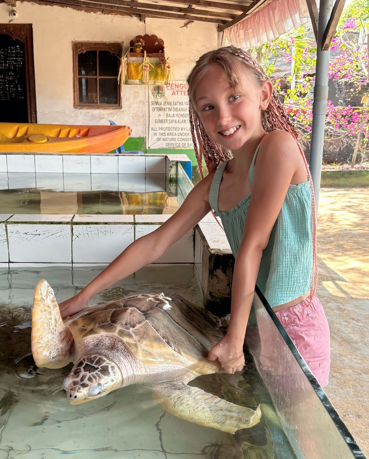 Eu mă duc cu drag oriunde sunt animale și dacă pot pune mâna, înscrie-mă că abia aștept. Ada la fel, Sotzu’ mai reticent, dar sunt mândră de el că a atins iguana, ceea ce nu cred că și-a propus vreodată în viață :)) Și mă bucur că am avut ocaziile astea în Bali.